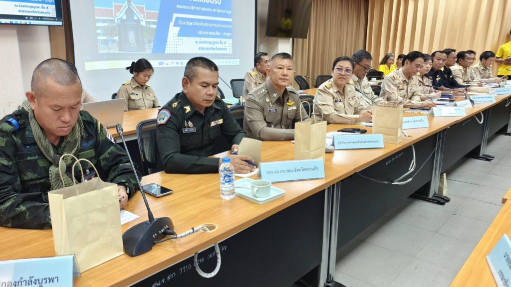 โดยในช่วงเช้า คณะกรรมาธิการฯ ได้ประชุมหารือ ณ ศาลากลางจังหวัดสระแก้ว โดยมี นายเชาวเนตร ยิ้มประเสริฐ รองผู้ว่าราชการจังหวัดสระแก้ว ให้การต้อนรับ พร้อมด้วย นางสาวจันดารา ปัญญานุวัฒน์ แรงงานจังหวัดสระแก้ว ซึ่งได้ร่วมบรรยายสรุปสถานการณ์ด้านแรงงานในพื้นที่ รวมถึงปัญหาแรงงานชายแดนไทย–กัมพูชา และอุปสรรคในการดำเนินงาน โดยมีหน่วยงานที่เกี่ยวข้องเข้าร่วมอย่างพร้อมเพรียง