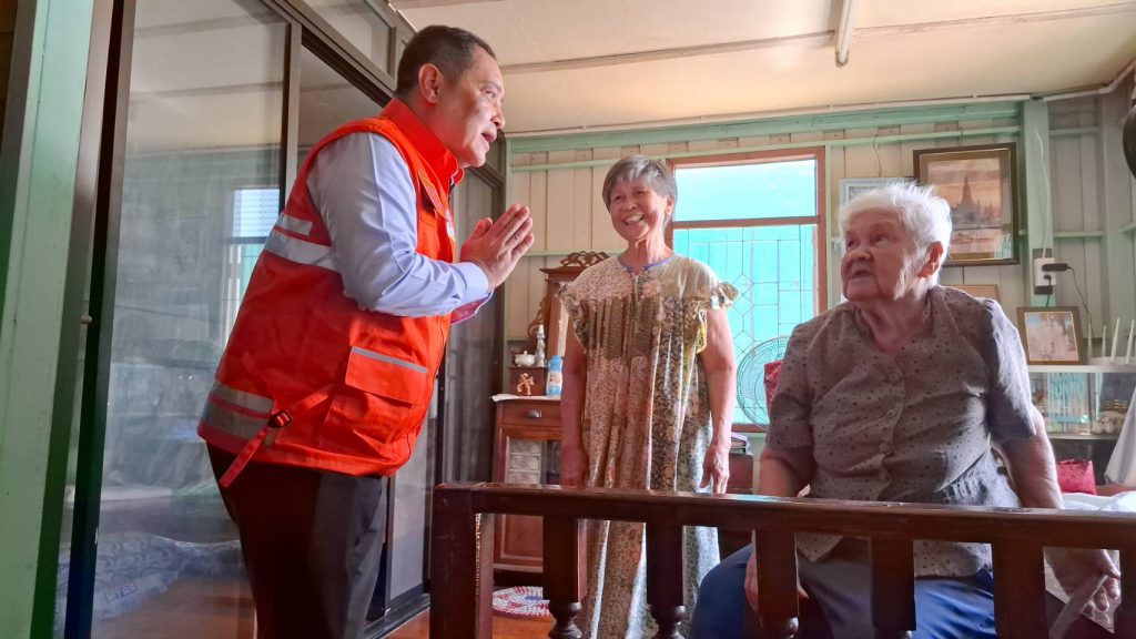 นอกจากให้กำลังใจแล้ว ผู้ว่าฯ ยังนำ ถุงยังชีพมอบให้ผู้ป่วยติดเตียงและกลุ่มเปราะบาง พร้อมกำชับให้หน่วยงานที่เกี่ยวข้องช่วยเหลือประชาชนอย่างเต็มที่