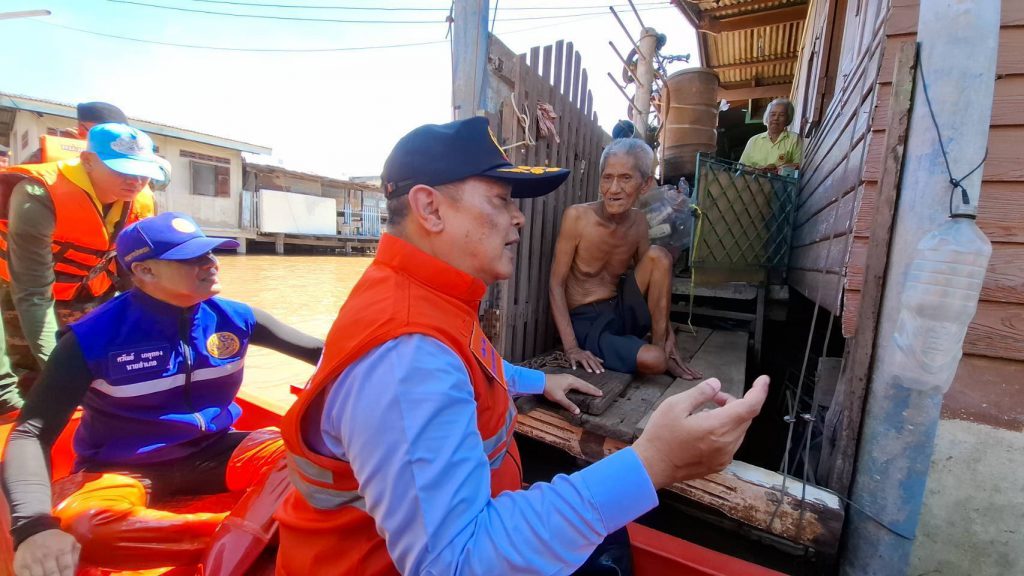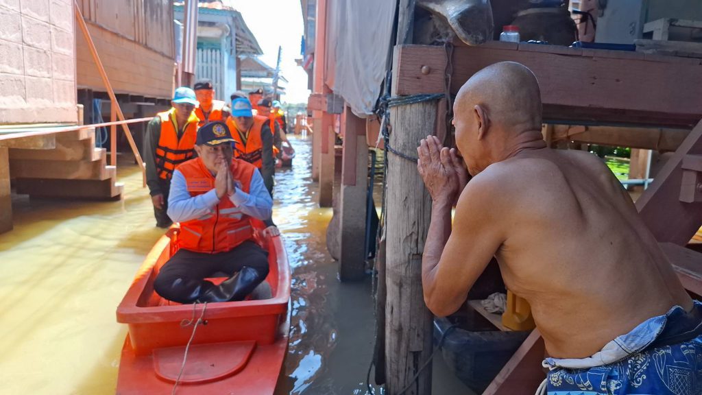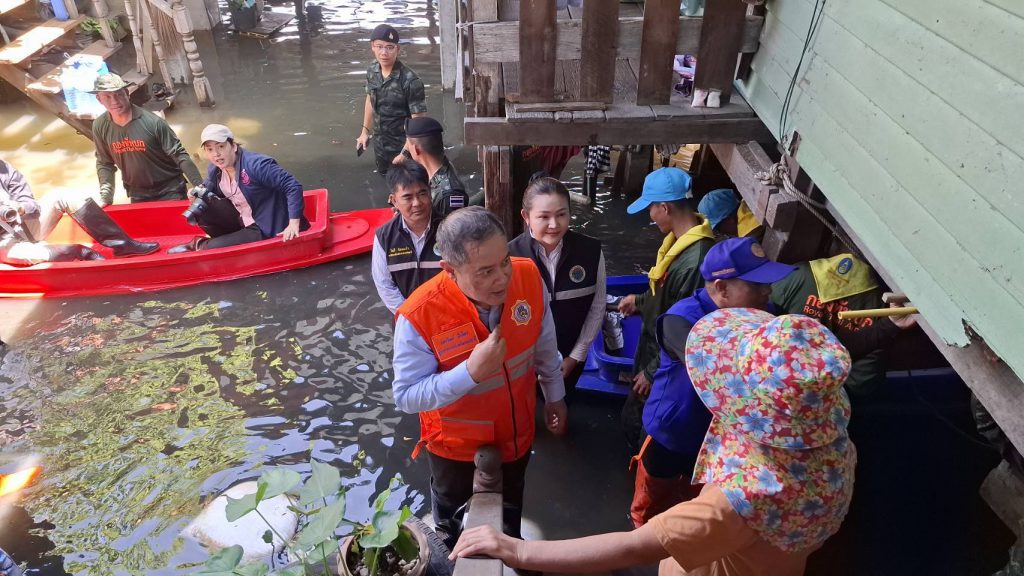 ปทุมธานี ผู้ว่าฯ คนใหม่ลงพื้นที่วันแรก ลุยน้ำท่วม 2 อำเภอ – มอบถุงยังชีพ–ให้กำลังใจชาวบ้าน