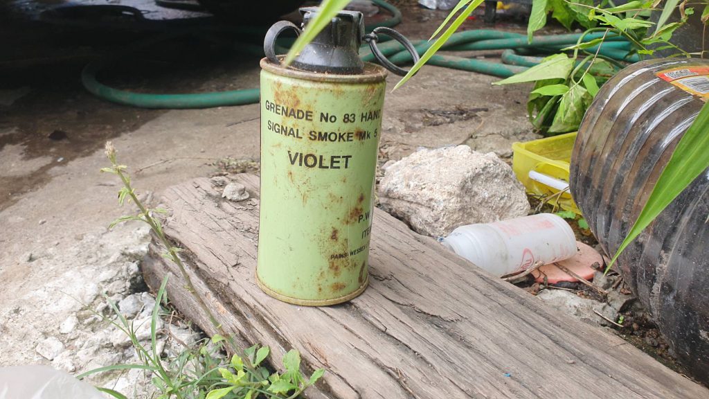 หนุ่มร้านของเก่า ช็อก! เจอ “ระเบิดควัน” ในถุงเหล็กเก่าบ้านอดีตทหาร