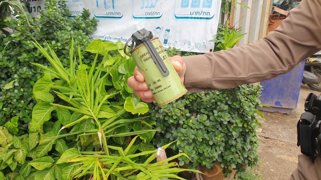 เมื่อเวลา 14.00 น. วันที่ 5 ตุลาคม 2568 เจ้าหน้าที่ตำรวจสภ. เมืองชลบุรีได้รับแจ้ง จากในเกษนรินทร์ คำดี อายุ 33 ปีเจ้าของร้านของเก่า เลขที่7/ 92 หมู่ 9 ตำบลนาป่า อำเภอเมือง จังหวัดชลบุรี ว่าพบวัตถุต้องสงสัยคล้ายระเบิด ที่ห่อผ้าอยู่ภายในร้านหลังไปรับเหมาซื้อเศษเหล็กมาจากบ้านอดีตทหาร หลังจากได้รับแจ้งจึงรีบไปตรวจสอบวัตถุดังกล่าวอยู่ในถุงพลาสติกมีลักษณะสีเขียว มีน้ำหนักและมีสลัก ข้างวัตถุได้เขียนเอาไว้ VIOLET วัตถุคล้ายระเบิดจึงได้ตรวจสอบและเช็คปรากฏว่าเป็นระเบิดควัน ชนิด Smoke จึงได้ทำการเก็บระเบิดดังกล่าว ไว้ตรวจสอบ และส่งให้เจ้าหน้าที่EOD เก็บรักษาไว้ในที่ปลอดภัยต่อไป