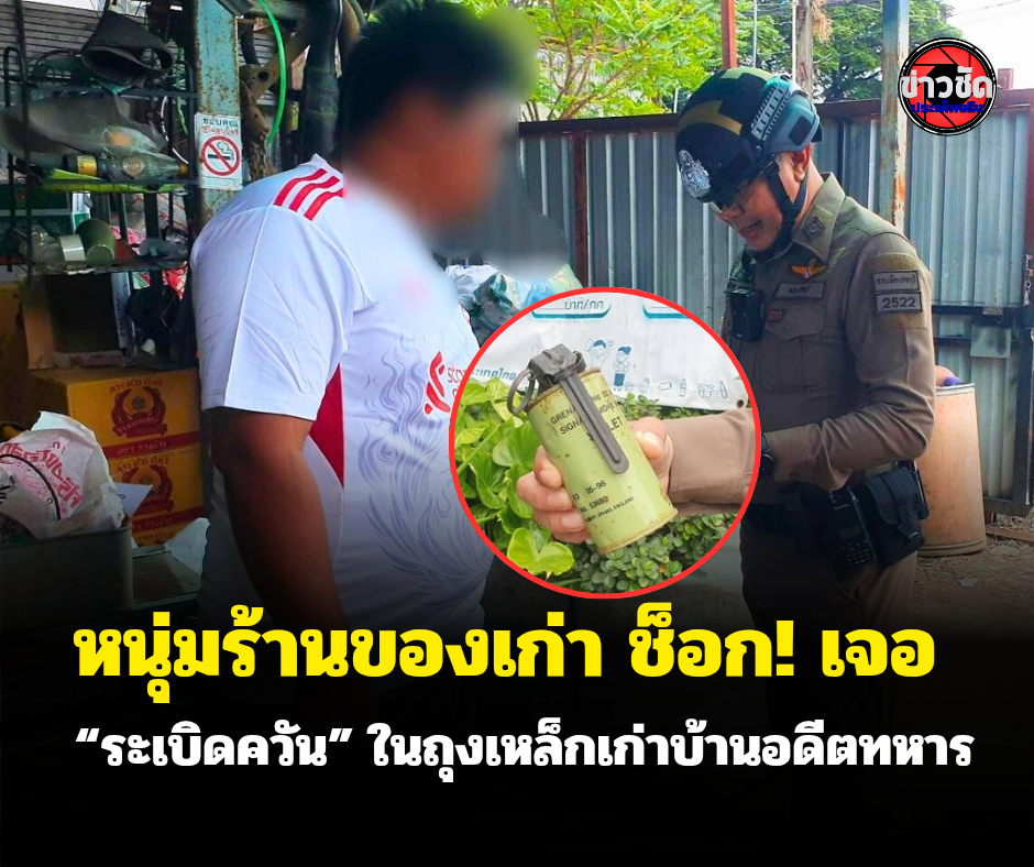 หนุ่มร้านของเก่า ช็อก! เจอ “ระเบิดควัน” ในถุงเหล็กเก่าบ้านอดีตทหาร — รีบแจ้งตำรวจเก็บกู้หวั่นระเบิดกลางร้าน