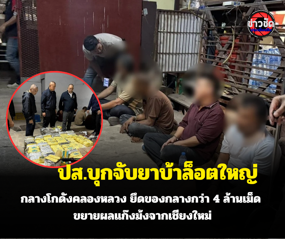 ผู้สื่อข่าวรายงานว่า เมื่อเวลา 22.00 น. วันที่ 5 ต.ค. 68 ตร.ปราบปรามยาเสพติด 3 กองบัญชาการตำปราบปรามยาเสพติด นำโดย พล.ต.ท.อาชยน ไกรทอง ผบช.ปส. พล.ต.ต.สมบูรณ์ เทียนขาว รอง ผบช.ปส. พล.ต.ต. อดิศ เจริญสวัสดิ์ ผบก.ปส.3 พ.ต.อ.ทิวาพงษ์ พลูโต ผกก.2 บก.ปส.3 พร้อมกำลัง ได้ร่วมกันทำการจับกุมผู้ต้องหา 5 คน ซึ่งเป็นชาวม้งจำนวน 3 คน และ คนไทย 2 คน โดยจับกุมได้ที่ภายในโกดังให้เช่าแห่งหนึ่งในพื้นที่ อ.คลองหลวง จ.ปทุมธานี พร้อมของกลางยาบ้าร่วม4ล้านเม็ดและยาไอซ์โดยทางด้าน เจ้าของโกดังให้เช่า กล่าวว่า ผู้เช่ารายนี้พึ่งจะมาเช่าได้เพียง 1 อาทิตย์ โดยทำสัญญาเช่าตามปกติ คือจ่ายล่วงหน้า 2 เดือน แล้วสิ้นเดือนจ่ายค่าเช่าตามปกติ โดยคนเช่าบอกว่า จะมาเช่าทำการแยกผัก ส่งตลาดและตนเองก็เห็นเขาอยู่กันแบบประชาชนทั่วไป โดยอยู่กันประมาณ 3-5 คน แต่รถบรรทุกคันดังกล่าว ก็พึ่งเข้ามาวันนี้เมื่อช่วงเย็น ก่อนที่จะมีเจ้าหน้าที่ตำรวจเข้ามาขอตรวจค้นทางด้านแหล่งข่าวที่เชื่อถือได้ กล่าวว่า ในเบื้องต้น ทางเจ้าหน้าที่ตำรวจได้ติดตามกลุ่มค้ายาเสพติดกลุ่มนี้มาจากจังหวัดเชียงใหม่ โดยเป็นกลุ่มชนเผ่าม้งและมีการสั่งการให้มีการขนส่งยาเสพติด โดยมีรถนำทาง จำนวน 2 คัน ซึ่งจับกุมได้ 1 คัน อีกคันมาส่งแค่จังหวัดนครสวรรค์ แล้วเอามาพักไว้พื้นที่จังหวัดปทุมธานี ก่อนที่จะมีการกระจายยาเสพติด ไปยังพื้นที่ต่างๆใกล้เคียงและส่งลงไปพื้นที้จังหวัดทางภาคใต้ ซึ่งเจ้าหน้าที่ติดตามจนมาพบว่า มีการซุกซ่อนยาเสพติดไว้ในใต้กระบะของรถขนส่งที่มีการดัดแปลงเพื่อใช้ขนส่งยายาเสพติดโดยเฉพาะ