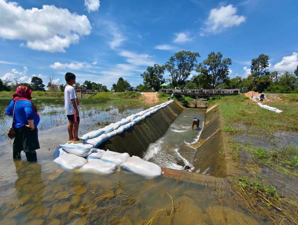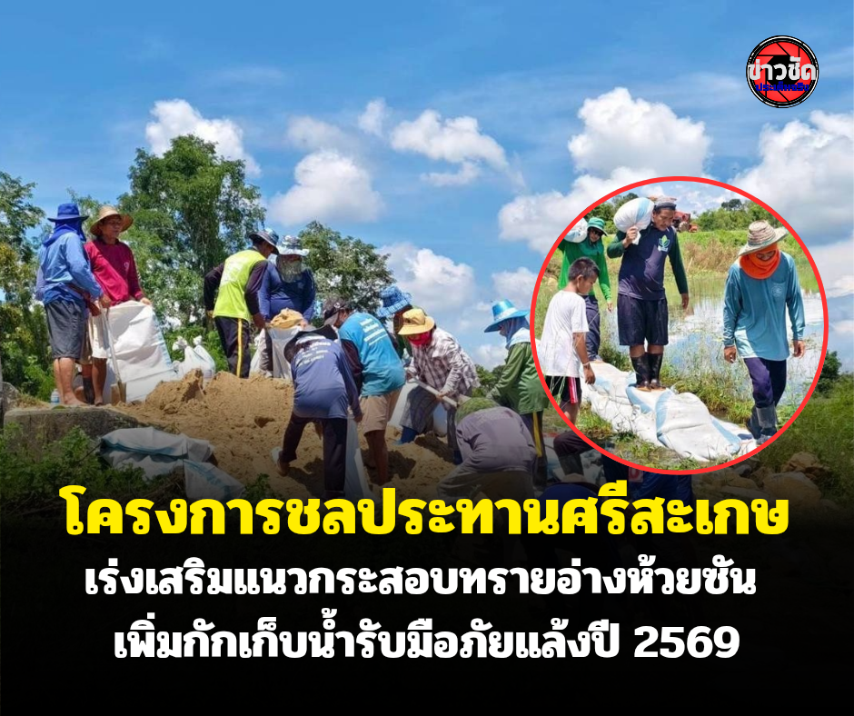 โครงการชลประทานศรีสะเกษ เร่งเสริมกระสอบทราย กักเก็บน้ำช่วยภัยแล้งปี69