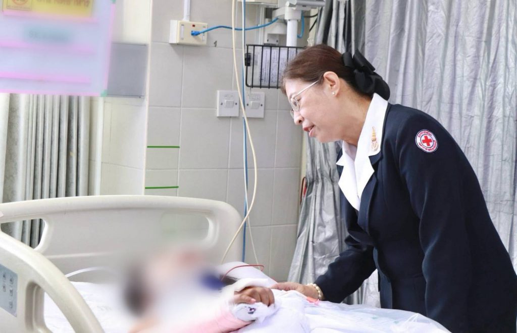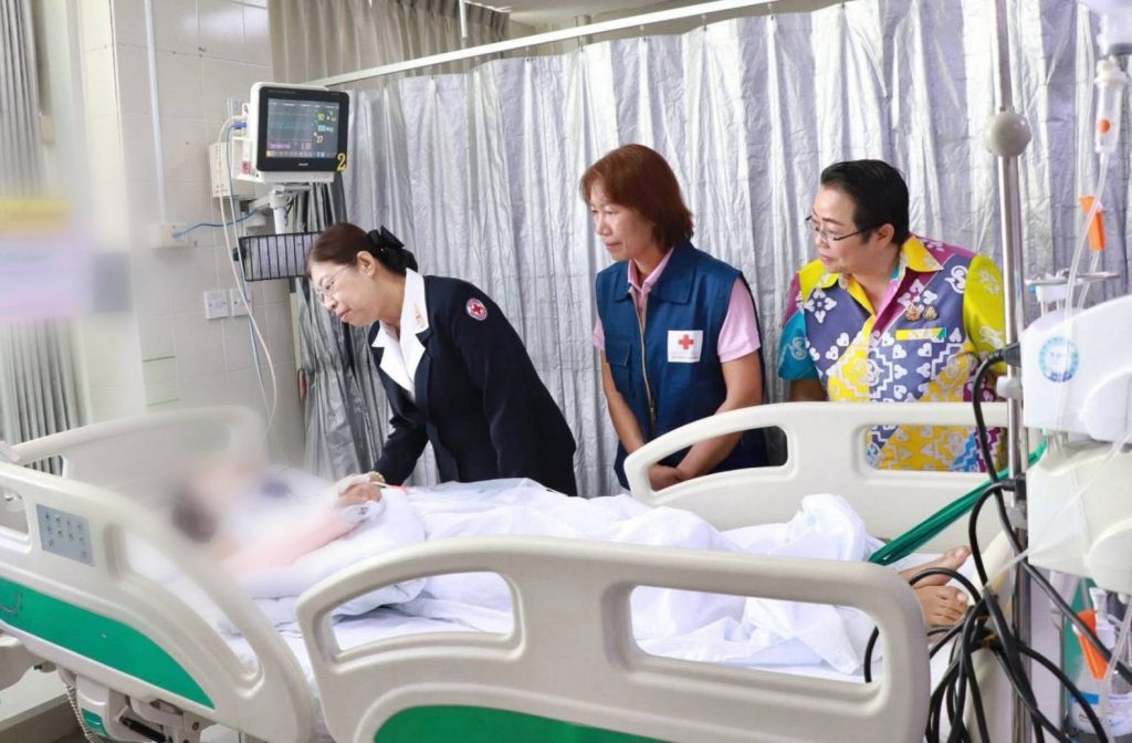 นายกเหล่ากาชาดชลบุรีเยี่ยมให้กำลังใจผู้ป่วยพลัดตกคอนโดฯ มอบความช่วยเหลือถึง รพ.ชลบุรี