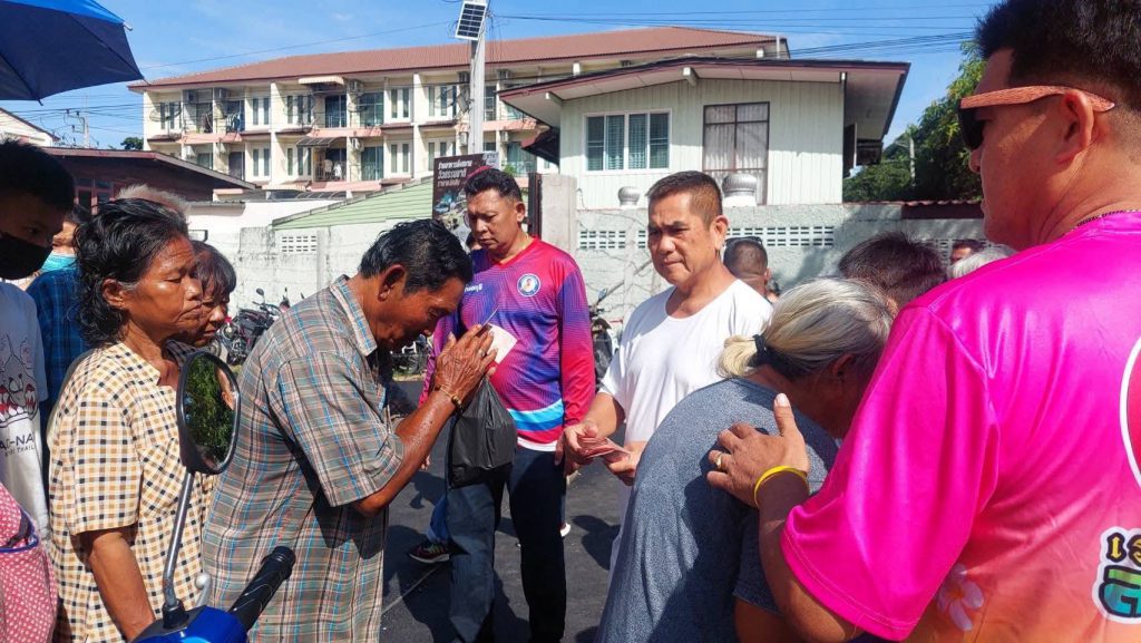 “เลขาฯ อบจ.ชลบุรี” พร้อมคุณพ่อ เปิดบ้านแจกเงินทุกวันพระ ช่วยชาวบ้านลดภาระค่าใช้จ่ายต่อเนื่อง