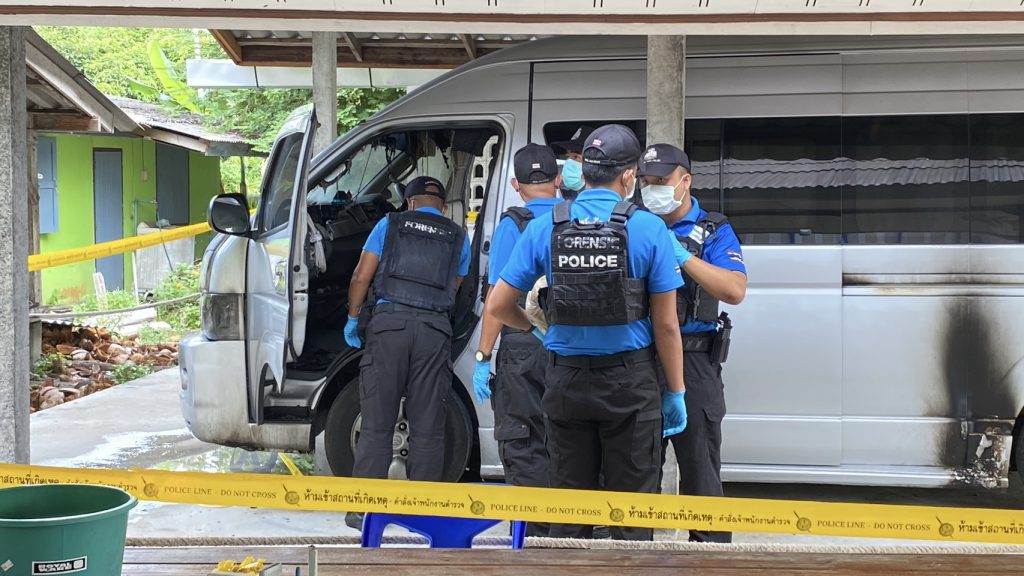 จากการตรวจสอบพบว่า กระจกหน้ารถถูกทุบจนเป็นรู ก่อนคนร้ายราดน้ำมันเชื้อเพลิงและจุดไฟเผา เปลวไฟลุกไหม้ห้องโดยสารด้านหน้าเสียหายหลายจุด รวมถึงกระจกหน้ารถแตก เจ้าหน้าที่จึงเก็บหลักฐานในที่เกิดเหตุไว้ตรวจสอบ