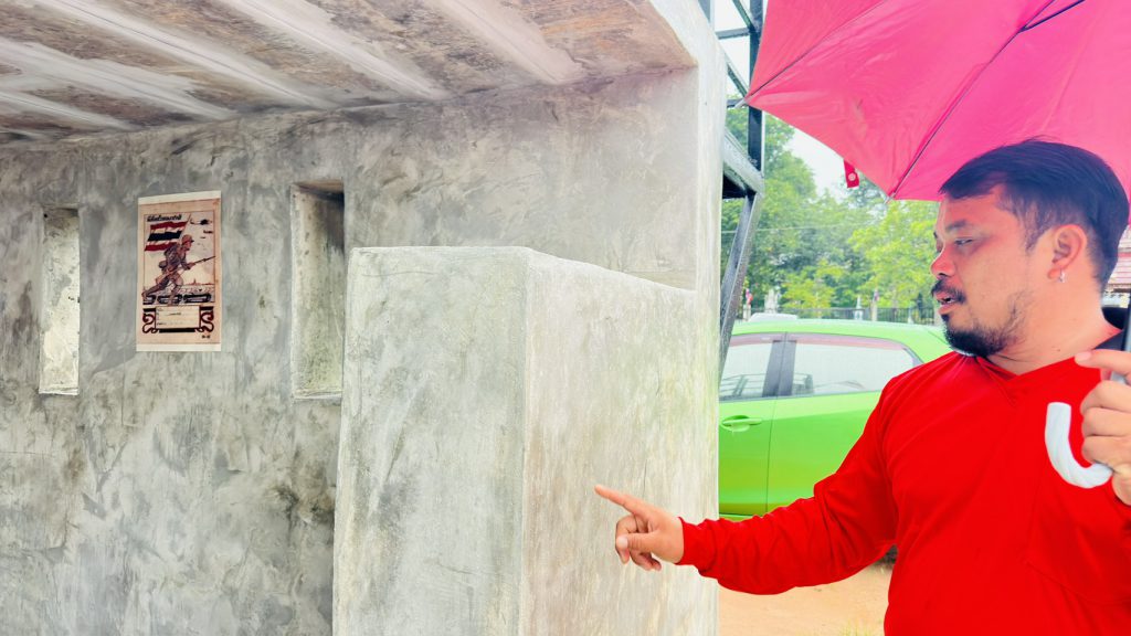 “ผมดูทิศทางลูกระเบิดจากฝั่งโน้นแล้วออกแบบเองหมดเลย ถ้าไม่มีเหตุปะทะก็ใช้เป็นบ้านเล่นพักผ่อนได้ แต่ถ้ามีเหตุขึ้นมาก็พร้อมหลบภัยในทันที” เขากล่าว