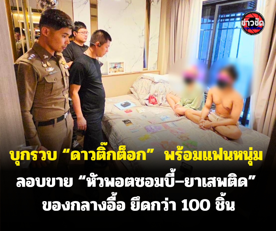 ตร.บุกรวบ “ดาวติ๊กต็อก” พร้อมแฟนหนุ่ม คาคอนโดหรู ย่านลาดพร้าว หลังลอบขาย “หัวพอตซอมบี้-ยาเสพติด” ยึดของกลางอื้อ