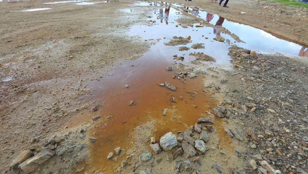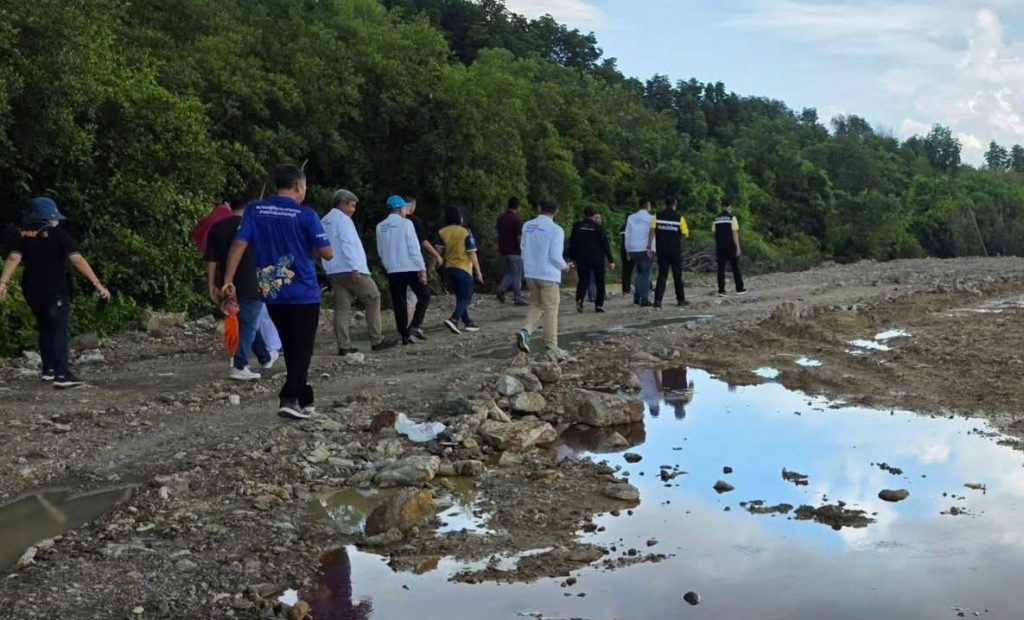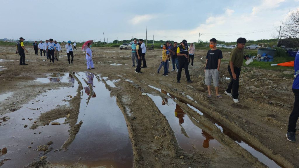 ต่อมาผู้ร่วมประชุมทั้งหมดได้ลงพื้นที่ไปตรวจสอบเรื่องกลิ่นเหม็น และนำน้ำไปตรวจสอบหาค่ากรดด่าง โดยเบื้องต้นวัดค่าน้ำเสีย ค่ามาตรฐาน 5.5-5.9 แต่ที่วัดได้คือความเป็นกรดอ่อน 4.2 คือเกินค่ามาตรฐาน จะมีผลกระทบต่อระบบนิเวศ สัตว์น้ำสอบถามนางสมศรี พรหมมา ชาวบ้านข้างเคียงที่ถมดิน เปิดเผยว่า ตนได้รับความเดือดร้อนมา 6 เดือนแล้ว ทางเจ้าของที่ดินไม่เคยมาพูดคุยกับตนเลย ผลกระทบที่เกิดคือ ต้นไม้ตาย มีกลิ่นเหม็นรุนแรงมาก จนตนเจ็บหน้าอก บริเวณที่น้ำเสียไหลมา บริเวณนี้จะมี 5-6 หลัง ตนไม่ได้อยากได้อะไรมากขอแค่ให้ดูดน้ำเสียนี้ออกไปให้หมดแล้วนำดินมากลบ ตนไม่อยากให้ถึงขั้นนี้แต่ตนทนไม่ไหวเพราะเป็นเวลาหลายเดือนแล้ว