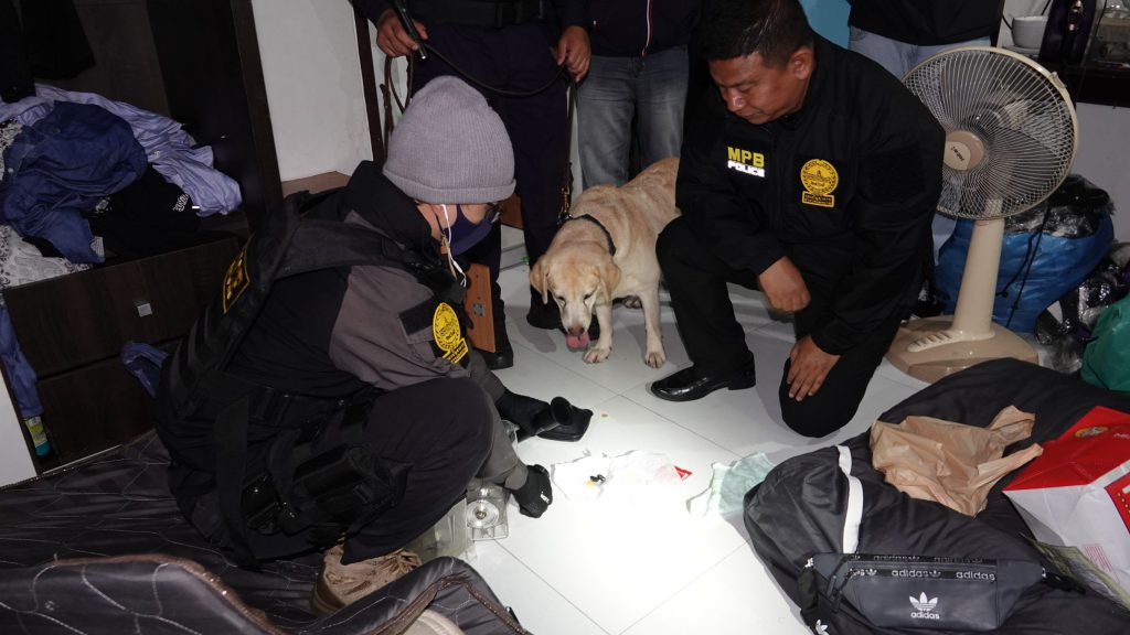 พล.ต.ท.สยาม บุญสม ผบช.น. จึงสั่งบุกทลายทันที โดยใช้กำลังเจ้าหน้าที่ศอ.ปส.บช.น. และ บก.สส.บช.น. พร้อมประสานสุนัขดมกลิ่น “จีจี้” และ “อาลฟ่า” มาช่วยในการตรวจค้น เนื่องจากคนร้ายซุกซ่อนยาเสพติดอย่างแนบเนียน จนกระทั่งพบว่ามีการซุกซ่อนยาเสพติดไว้ใน แกนกลางของเครื่องปั่นน้ำผลไม้