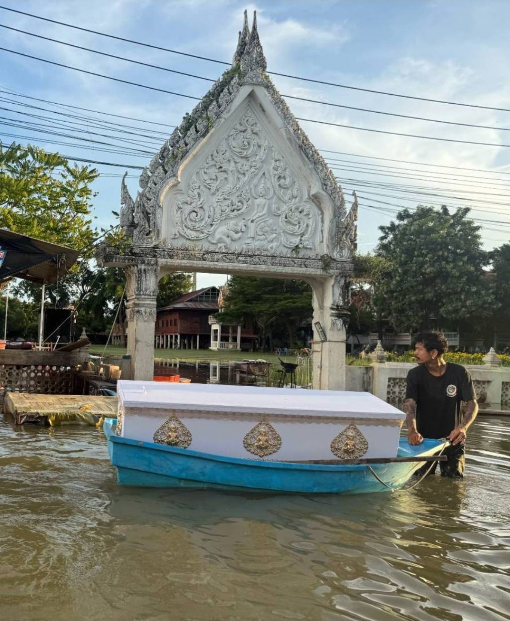 โดยต้องนำร่างผู้เสียชีวิตใส่โลงและใส่เรือพายออกจากบ้านเพื่อนำไปบำเพ็ญกุศลที่วัดบ้านตาล โดยต้องจูงเรือที่บรรทุกศพอยู่ในโลงระยะทางกว่า 300 เมตร ไปจนถึงหน้าวัดเพื่อตั้งศพบำเพ็ญกุศลตามประเพณีต่อไป ซึ่งเป็นบรรยากาศที่สุดเศร้าในช่วงสถานการณ์วิกฤตน้ำท่วมของ จ.พิจิตร ที่ถึงแม้ขณะนี้ฝนจะหยุดตกแล้วแต่ระดับน้ำก็ยังมิได้ลดแห้งลง ซึ่งคาดว่าพื้นที่ลุ่มน้ำยม 4 อำเภอของพิจิตร คือ อ.สามง่าม อ.โพธิ์ประทับช้าง อ.บึงนาราง อ.โพทะเล น้ำน่าจะยังท่วมอยู่ยาวไปจนถึงต้นเดือนพฤศจิกายนหรือหลังจากวันลอยกระทง 5 พ.ย. 68 ไปแล้วโน่นเลย