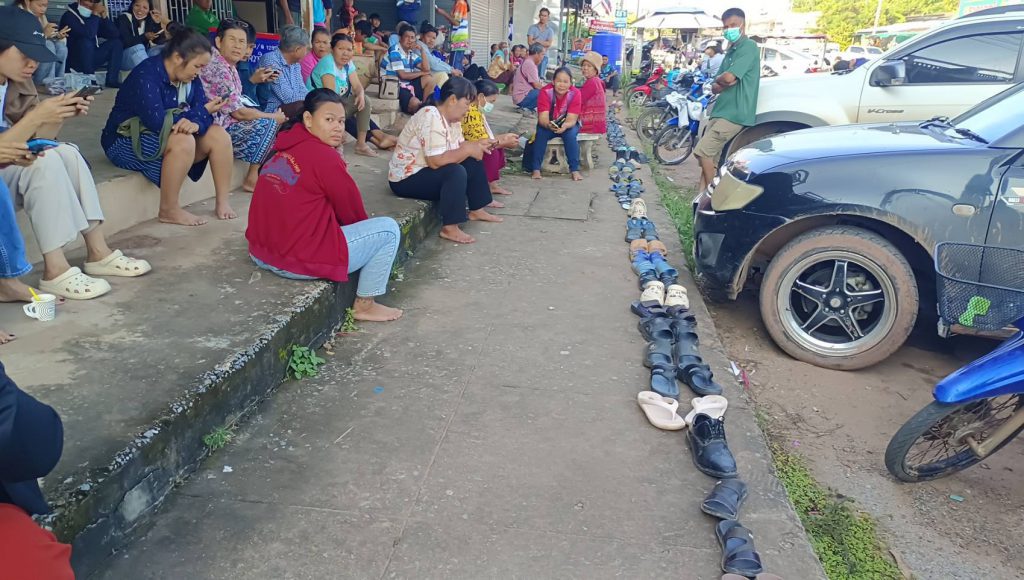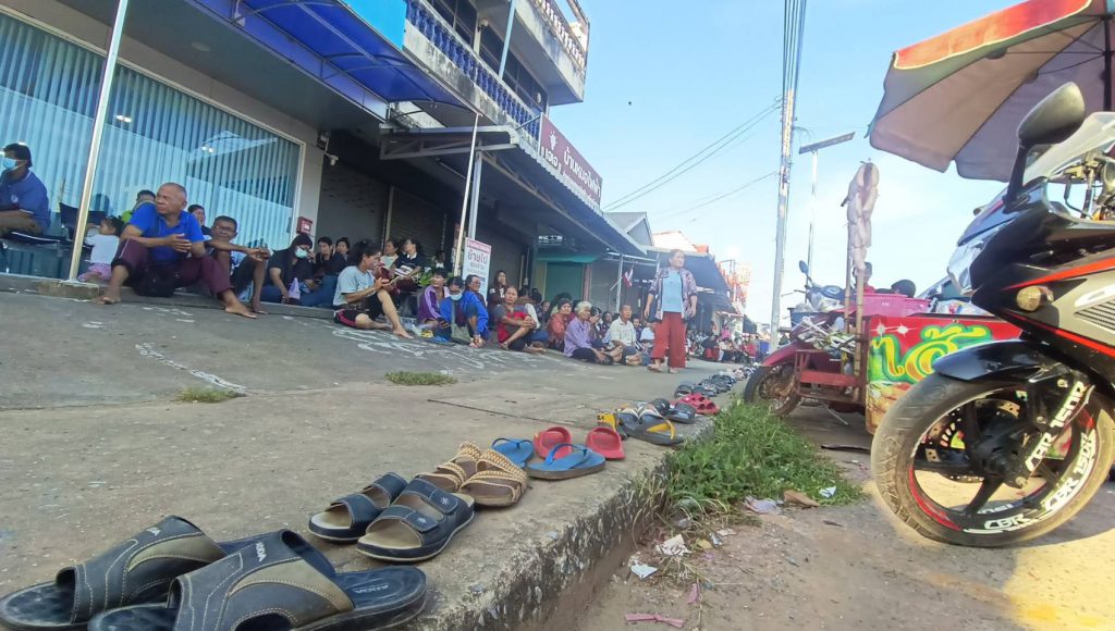 ชัยภูมิ ชาวบ้านแห่นำรองเท้าวางเรียงแถวจองคิว คนละครึ่งพลัสยาวเหยียดแน่นธนาคาร