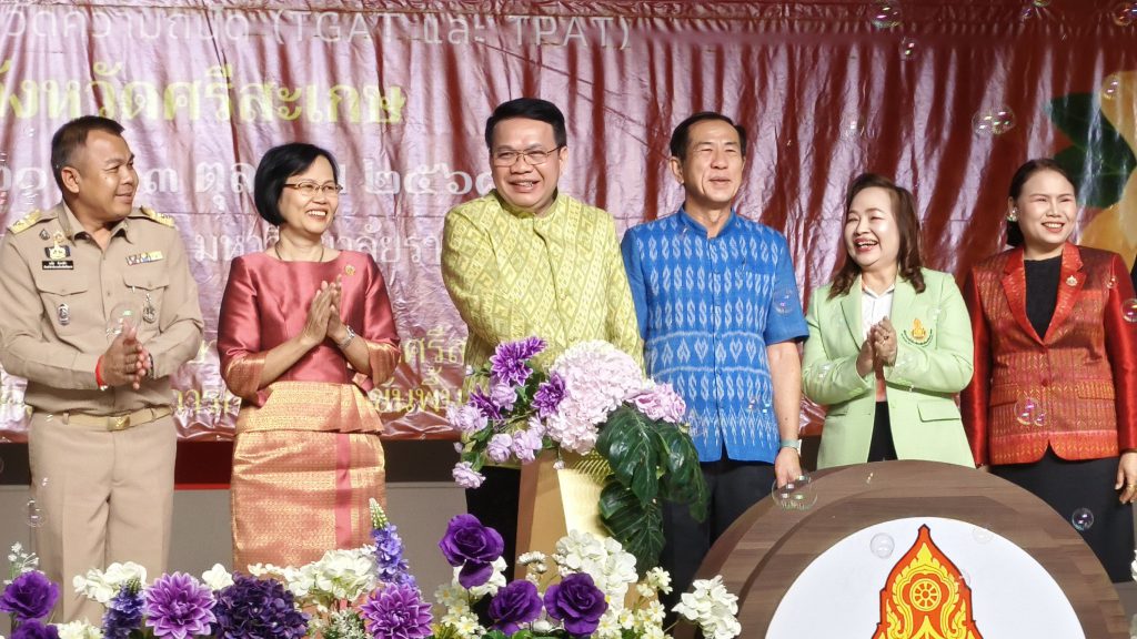 เมื่อวันที่ 20 ตุลาคม 2568 ที่หอประชุม มหาวิทยาลัยราชภัฏศรีสะเกษ ดร.พิเชฐ โพธิ์กักดี เลขาธิการคณะกรรมการการศึกษาขั้นพื้นฐาน เป็นประธานเปิดกิจกรรม “KICK OFF รินน้ำใจ เติมความรู้ สู่น้อง 4 จังหวัด ในระหว่างวันที่ 20 – 23 ตุลาคม 2568 โดยมีนางสาวรัตนา แสงบัวเผื่อน ที่ปรึกษาด้านพัฒนากระบวนการเรียนรู้ปฏิบัติหน้าที่ ผอ.สำนักบริหารการมัธยมศึกษา ดร.รัตติกร ทองเนตร ผอ.สำนักบริหารการมัธยมศึกษา และนายพนัส จันทร์คำ หัวหน้าสำนักงานจังหวัดศรีสะเกษ นำช้าราชการครูและนักเรียนมัธยมศึกษาชั้นปีที่ 6 จาก สพม.ศรีสะเกษ ยโสธร สพม.สุรินทร์ สพม.บุรีรัมย์ และ สพม.อุบลราชธานี อำนาจเจริญ เข้าร่วมโครงการประมาณ 4,000 คน ทั้งนี้เพื่อเป็นการส่งเสริมการเตรียมความพร้อมสำหรับการสอบวัดความถนัด (TGAT และ TPAT) เพื่อเข้าศึกษาต่อในระดับอุดมศึกษาต่อไป