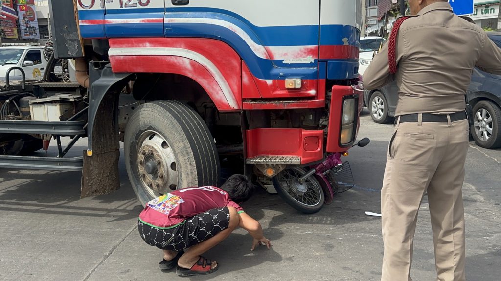 เจ้าหน้าที่ตรวจสอบกล้องวงจรปิดพบว่ารถสิบล้อหัวลาก จอดรอไฟแดงโดยมีรถจักรยานยนต์ของผู้ตายจอดอยู่หน้ารถพ่วง จากนั้นรถสิบล้อได้เคลื่อนออกมาอย่างช้าเพื่อจะกลับรถ คลิปวงจรปิดยังได้ยินเสียงผู้ใช้รถที่จอดติดไฟแดงบีบแตรเสียงดังกระหึ่มหลายคัน แต่รถสิบล้อยังเคลื่อนออกไปอีกจนทับร่างคนขับรถจักรยานยนต์ดังกล่าว