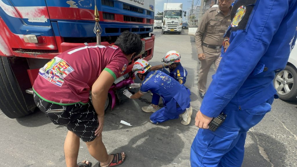 ไม่ทันใช้คนละครึ่ง! ขี่จยย.ไปต่อคิวธนาคารเจอรถเหยียบกลางสี่แยกหัวขาด