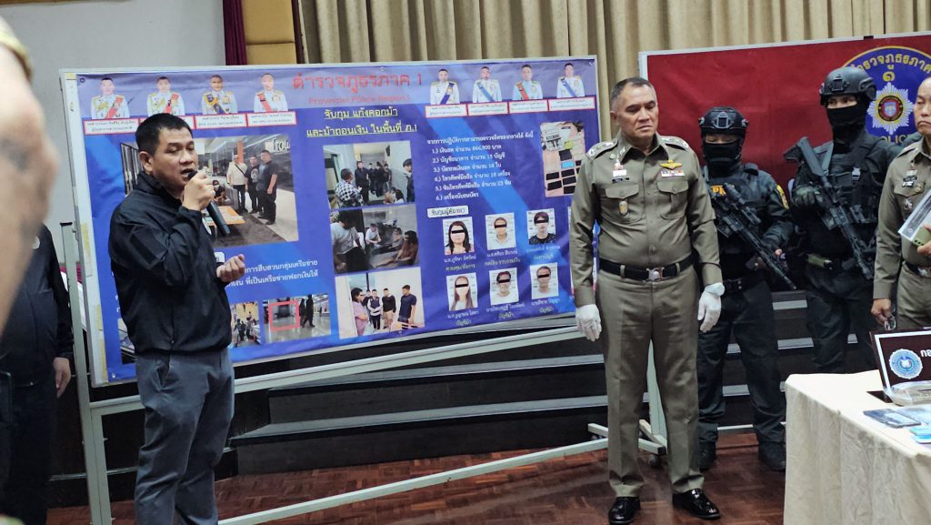 วันนี้ (4 พ.ย 68) เวลา 09.30 น. ที่ตำรวจภูธรภาค1 พล.ต.ท.วัฒนา ยี่จีน ผบช.ภ.1 พร้อมคณะฯแถลงข่าว จับกุมคดียาเสพติดรายสำคัญทำลายเครือข่ายยาเสพติดนักขนยาเสพติดตะวันออก เจ้าหน้าที่ในสังกัดได้ร่วมการสืบสวนจับกุมผู้ต้องหาที่ทำหน้าที่จัดเก็บและลำเลียงยาเสพติดกลุ่มนักขนยาเสพติดตะวันออก จับกลุ่มผู้ต้องหา 2 รายคือ นายภาณุวัตน์ หรือ น๊อต อายุ 28 ปี และ นายดนุพลหรือมอส อายุ 25 ปี พร้อมของกลาง คือคีตามีน เป็นวัตถุออกฤทธิ์ต่อจิตประสาทประเภท 2 รวมน้ำหนักประมาณ 300 กิโลกรัม และ รถยนต์กระบะยี่ห้อ อีซูซุ ดีแม็ก สีขาว ที่ใช้ลำเลียงยาเสพติด จำนวน 1 คัน โทรศัพท์เคลื่อนที่ที่ใช้ในการติดต่อซื้อขายยาเสพติดจำนวน 2 เครื่อง