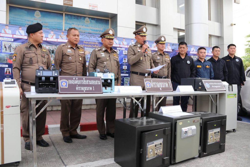 ปทุมธานี ผบช.ภ1 แถลงข่าวจับกุมแก๊งค์สแกมเมอร์และจับเว็บพนันออนไลน์ ผู้ต้องหา 10 คน ของกลางเงินสดหว่า 30 ล้านบาท