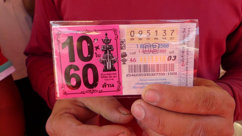 เมื่อเวลา 17.30 น. วันที่ 1 ธันวาคม 2568 ผู้สื่อข่าวเดินทางไปยังวัดห้วยสูบ ตำบลนามะตูม อำเภอพนัสนิคม จังหวัดชลบุรี ทราบว่ามีชาวบ้านถูกรางวัล เลขท้าย 2 ตัว 22 และ 3 ตัว 137 คนละ10ใบ และนำดอกไม้ธูปเทียนมาแก้บนหลวงพ่อใหญ่กันแน่นวิหาร เมื่อผู้สื่อข่าวไปถึงพวกชาวบ้านกว่า 20 คนในมือกำฉลากกินแบ่งรัฐบาลคนละ 10 ใบ พร้อมประทัดคนละกล่องและมีดอกไม้ธูปเทียนกำลังกราบไหว้หลวงพ่อใหญ่แก้บนหลังมีโชคลาภ ถูกรางวัลเลขท้าย 2 ตัวและ 3 ตัว
