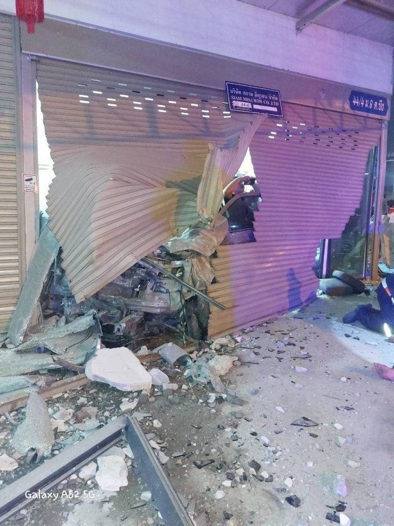 ในที่เกิดเหตุพบรถกระบะ Isuzu D-Max สีบรอนซ์ ไม่ติดป้ายทะเบียน ด้านหน้าพังยับเยิน ชนเข้ากำแพงบ้านจนทรัพย์สินเสียหายหลายรายการ ด้านท้ายรถพบผู้ได้รับบาดเจ็บสาหัส 2 ราย ซึ่งต่อมาเสียชีวิต 1 ราย ทราบชื่อคือ นายวราทัศน์ อายุ 31 ปี