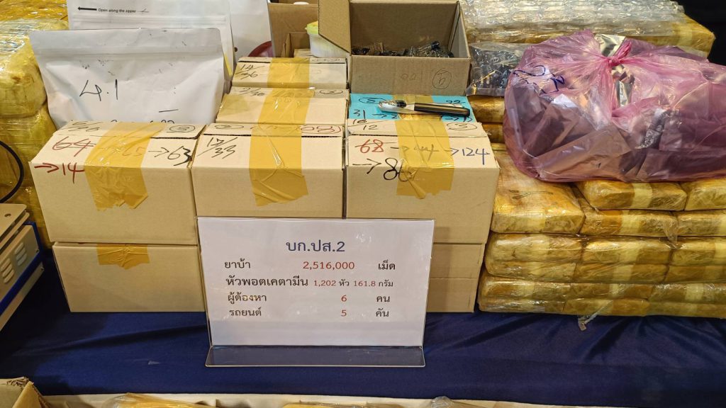 คดีที่ 4 บก.ปส.2 เปิดยุทธการทลายขบวนการ “พอต K ทุนจีนสีเทา” ที่ทำตั้งแต่ผลิต–จำหน่ายแบบครบวงจร ตั้งฐานปฏิบัติการในคอนโดหรูย่านพัทยา–กรุงเทพฯ ใช้วิธีซุกซ่อนยาในพัสดุอาหารสัตว์ ส่งผ่านขนส่งด่วนเพื่อกระจายสู่แหล่งท่องเที่ยวสำคัญ ผลการจับกุมใน 3 จุด ได้แก่ จุดที่ 1 พัทยา ล่อซื้อที่คอนโด The Trust South Pattaya จับกุม Mr. Liu Yisheng พร้อมพอต K จำนวน 100 หัว จุดที่ 2 ห้วยขวาง–ดินแดง จับ Mr. Liu Huowen พบอุปกรณ์ผลิตและเบาะแสสำคัญของเครือข่าย และจุดที่ 3 คอนโดศุภาลัย ปาร์ค แคราย–งามวงศ์วาน นนทบุรี ตรวจพบแหล่งผลิตและโกดังใหญ่ จับเพิ่มอีก 2 ราย ของกลางรวม พอต K 2,386 หัว วัตถุออกฤทธิ์ “อิโทมิเตต” 716 กรัม ไอซ์ 12.2 กรัม พอตว่าง 5,390 หัว และเงินสดหลายสกุลรวมมูลค่านับล้านบาท