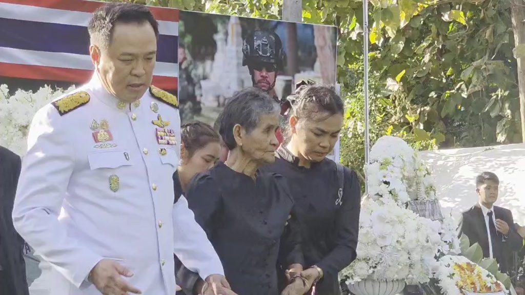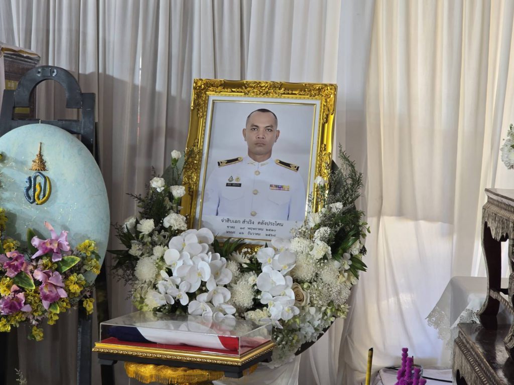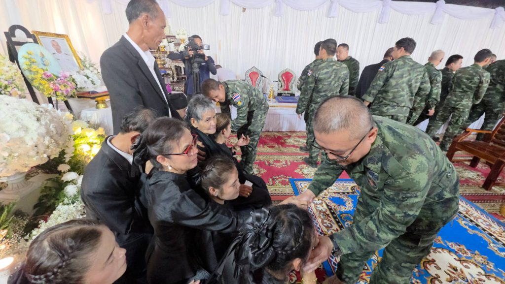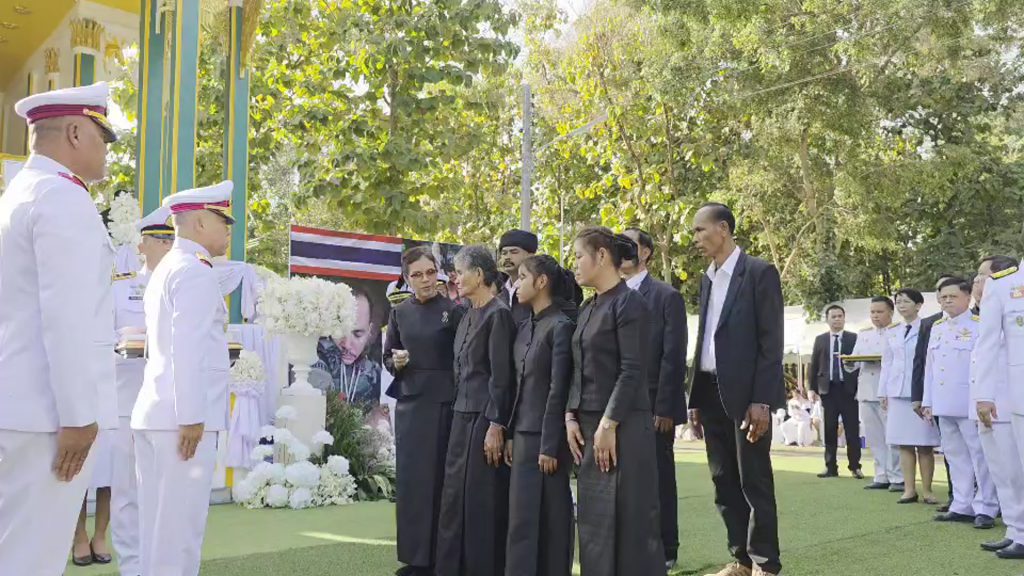 วันที่ 24 ธ.ค.2568 ผู้สื่อข่าวรายงานว่า บรรยากาศที่วัดห้วยปอ ต.ปังกู อ.ประโคนชัย จ.บุรีรัมย์ ซึ่งเป็นสถานที่จัดพิธีพระราชทานเพลิงศพจ่าสิบเอก สำเริง คลังประโคน อายุ 38 ปี ทหารไทยที่ไปเสียชีวิตระหว่างการปะทะกับทหารกัมพูชา กับลูกน้องพลทหาร รวม 2 ศพในคราวเดียวกัน ที่เนิน 350 เมื่อวันที่ 16 ธ.ค.ที่ผ่านมา