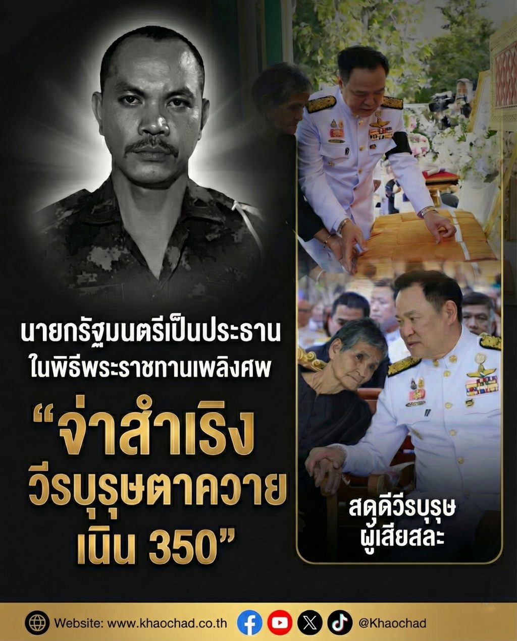 นายกฯ เป็นประธานพิธีพระราชทานเพลิงศพ “จ่าสำเริง วีรบุรุษตาควาย เนิน 350” สดุดีเกียรติยศผู้สละชีพเพื่อแผ่นดิน