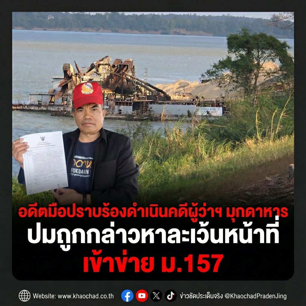 อดีตมือปราบร้องดำเนินคดีผู้ว่าฯ มุกดาหาร ปมถูกกล่าวหาละเว้นหน้าที่ เข้าข่าย ม.157