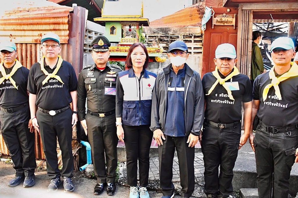 โดยการลงพื้นที่วันนี้ มีผู้เข้าร่วมประกอบด้วยนางสาวขวัญเรือน ศรีจันทร์ ปลัดจังหวัดชลบุรี นายวรจักร สถาพรภิญโญ นายอำเภอเมืองชลบุรี นายองอาจประเสริฐจิตต์ นายกเทศมนตรีเมืองชลบุรี คณะกรรมการเหล่ากาชาดจังหวัดชลบุรี คณะผู้บริหารเทศบาลเมืองชลบุรีและหน่วยงานที่เกี่ยวข้องร่วมลงพื้นที่ให้ความช่วยเหลือและให้กำลังใจผู้ประสบภัยทั้งนี้จังหวัดชลบุรีได้ประสานหน่วยงานที่เกี่ยวข้องเร่งดำเนินการช่วยเหลือในระยะยาว โดยเฉพาะการก่อสร้างบ้านให้แก่ครอบครัวผู้ประสบภัยซึ่งเป็นหนึ่งในโครงการช่วยเหลือของเหล่ากาชาดจังหวัดชลบุรีเพื่อฟื้นฟูคุณภาพชีวิตและบรรเทาความเดือดร้อนของประชาชนอย่างยั่งยืน