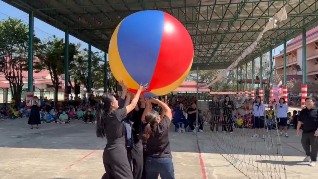 จากนั้นเป็นการแข่งขันกีฬาซึ่งเป็นไฮไลท์ของงาน โดยคณะครูและเจ้าหน้าที่ได้มีการจัดการแข่งขันวอลเลย์บอลรูปแบบใหม่โดยใช้ลูกบอลยักษ์ในการแข่งขันซึ่งเป็นกิจกรรมที่บรรดาคุณครู เคยได้เล่นกันมาตั้งแต่เด็กซึ่งบรรยากาศภายในงานเพราะว่าเหมือนเป็นการย้อนเวลากลับไปให้พี่พี่คุณครู ได้กลับไปเป็นเด็กอีกครั้งโดยมีการแข่งขันที่สนุกสนาน แล้วเรียกเสียงหัวเราะได้ทั้งนักกีฬารวมถึงนักเรียนที่เข้ามาร่วมกันส่งเสียงเชียร์ได้อย่างคึกคัก
