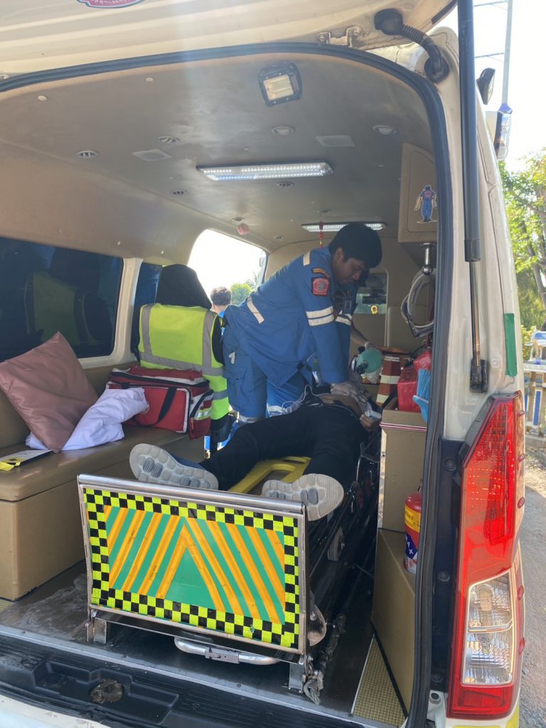นครปฐมม – วันที่ 19 มกราคม 2569 พ.ต.ต.นิรชา หนูผาสุข สว.(สอบสวน) สถานีตำรวจภูธรสามพราน รับแจ้งเหตุรถแท็กซี่พุ่งชนกองดินริมถนน มีผู้หมดสติอยู่ภายในรถ บริเวณใกล้ โรงเรียนคลองจินดา หมู่ 10 ต.ตลาดจินดา อ.สามพราน จ.นครปฐม จึงรุดตรวจสอบพร้อมเจ้าหน้าที่ มูลนิธิกู้ภัยพรานพิทักษ์ “เต็กก่า” จีปั้งเกาะ