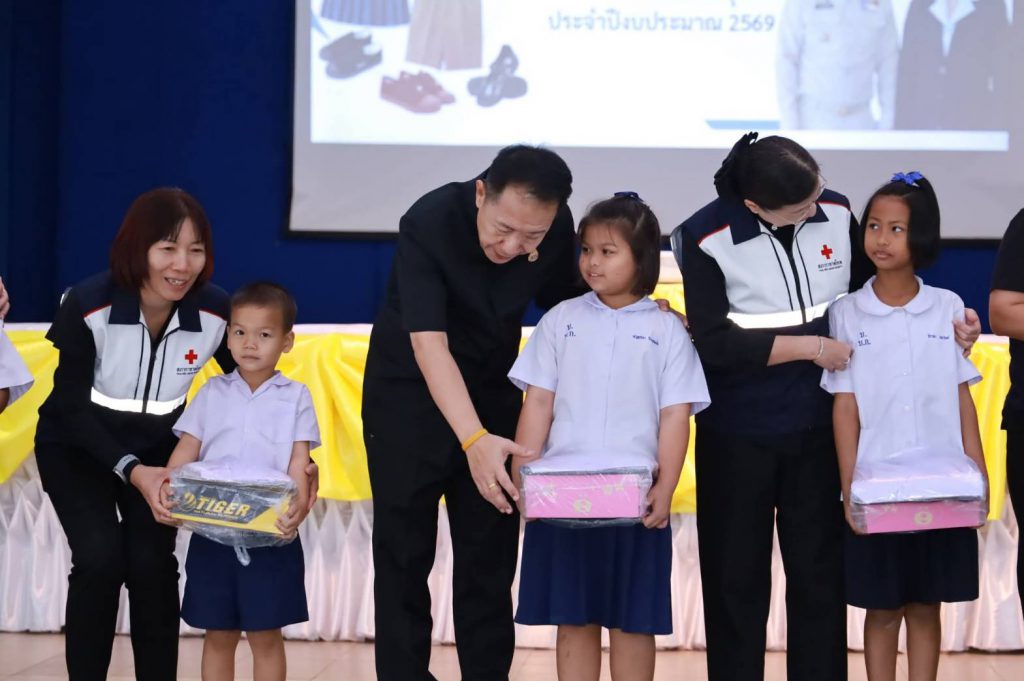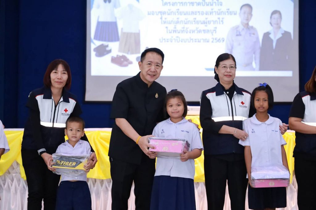 กาชาดชลบุรีปันน้ำใจมอบชุดนักเรียน–รองเท้า ช่วยเหลือเด็กนักเรียนผู้ยากไร้ อำเภอบ้านบึง
