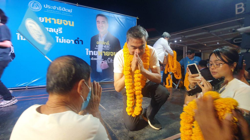 “อภิสิทธิ์ เวชชาชีวะ” หัวหน้า พรรคประชาธิปัตย์ แคนดิเดตนายกและหัวหน้าพรรคของพรรคประชาธิปัตย์ลงพื้นที่ตลาดวิสิทย์ชัย อำเภอบ้านบึงจังหวัดชลบุรี ช่วยผู้สมัคร ส.ส. หาเสียง ท่ามกลางการต้อนรับอย่างอบอุ่นจากพ่อค้าแม่ค้า พร้อมย้ำแนวนโยบายสานต่อเบี้ยยังชีพผู้สูงอายุ 1,000 บาท