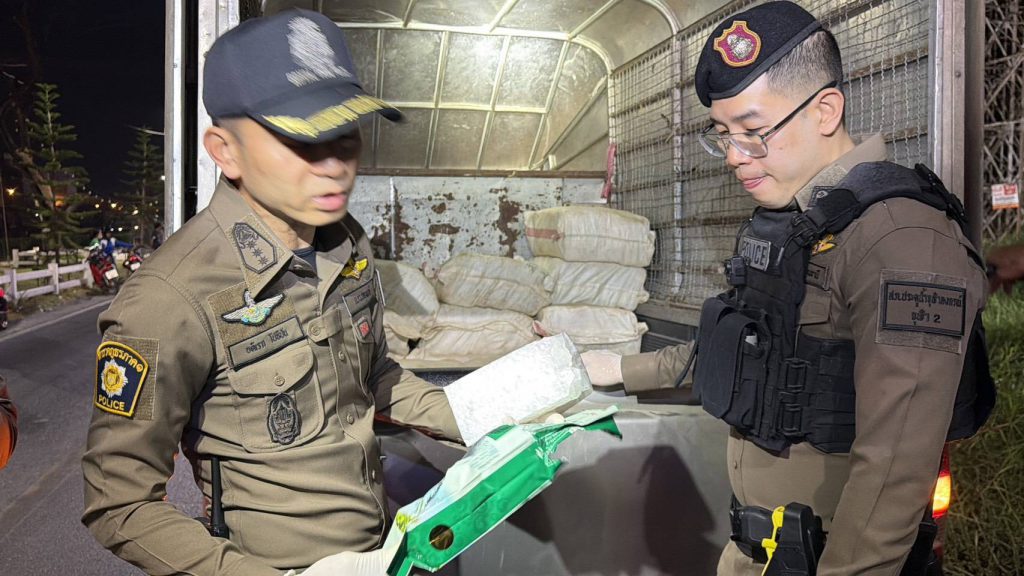 ปทุมธานี กระบะตู้ทึบซิ่งแหกด่าน จอดรถวิ่งหนีตำรวจพบยาไอซ์ 15 กระสอบ