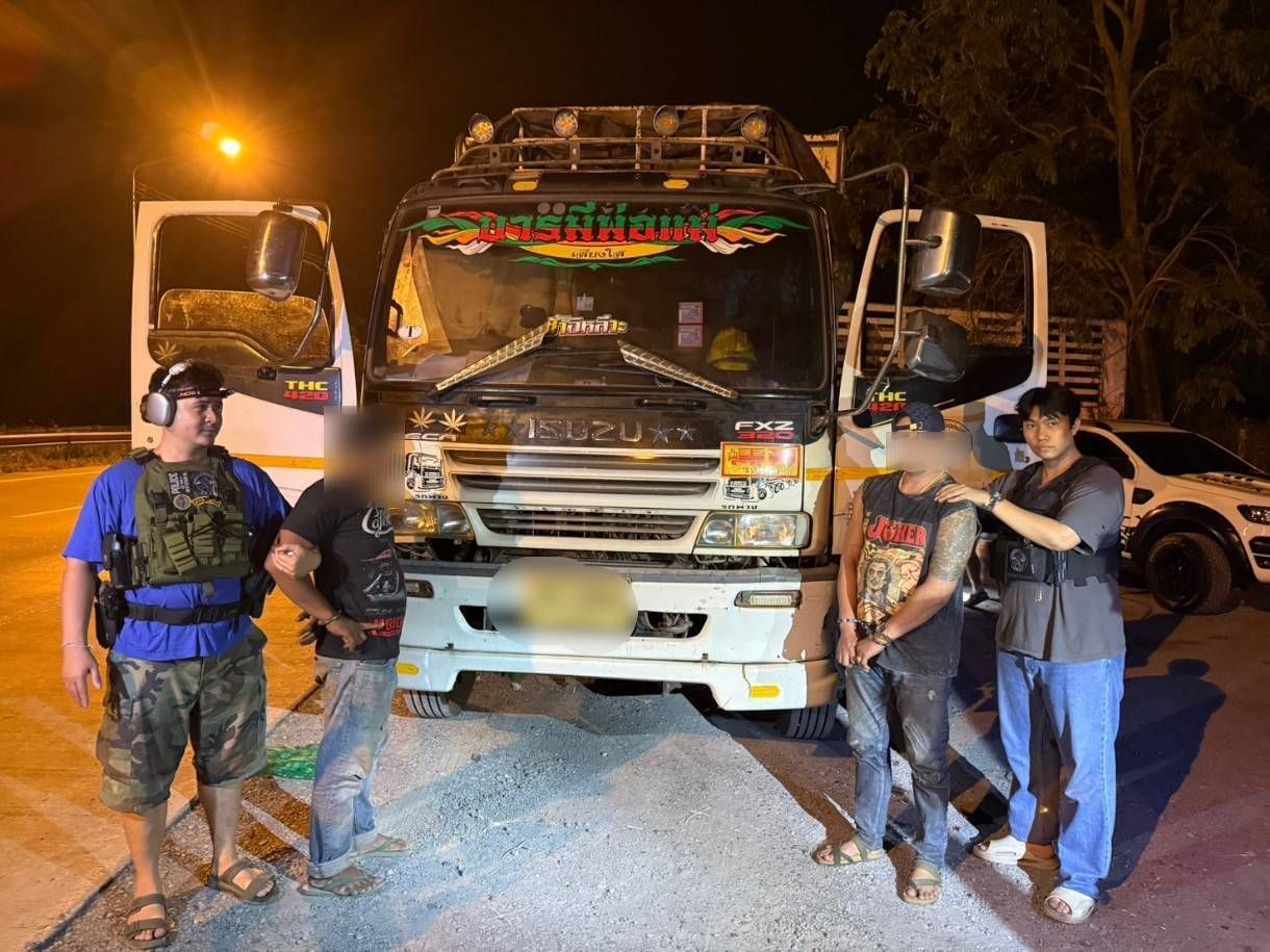 กระทั่งคืนวันที่ 25 มกราคม 2569 เจ้าหน้าที่พบความผิดปกติของรถยนต์ต้องสงสัย ก่อนติดตามไปยังถนนหมายเลข 362 ถนนบายพาสสระบุรีฝั่งตะวันออก พบรถบรรทุกพ่วง 22 ล้อ และรถกระบะจอดพักริมทาง ก่อนมีชายต้องสงสัยช่วยกันขนย้ายกระสอบต้องสงสัยจากรถพ่วงขึ้นรถกระบะเมื่อเจ้าหน้าที่แสดงตัวเข้าตรวจค้น กลุ่มผู้ต้องสงสัยพยายามหลบหนี สามารถควบคุมตัวไว้ได้ 2 ราย คือนายสิน อายุ 48 ปีนายแมน อายุ 37 ปี
