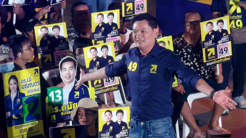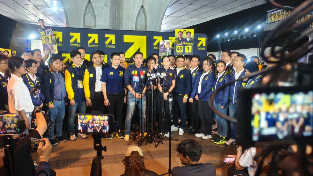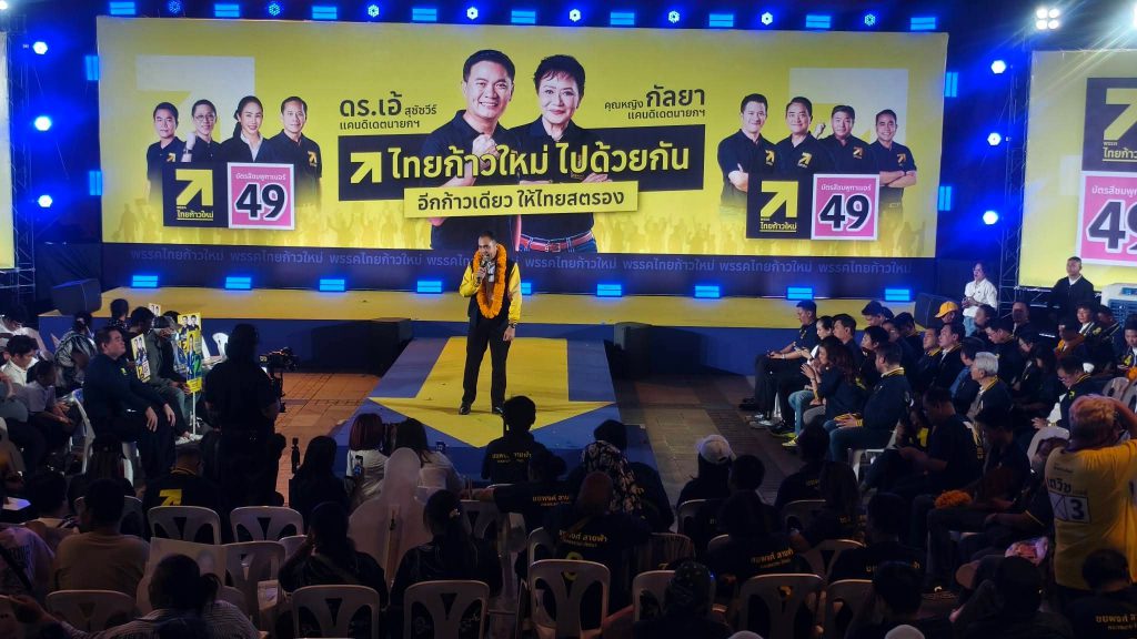 บนเวทีปราศรัยนำโดย ศาสตราจารย์ ดร.สุชัชวีร์ สุวรรณสวัสดิ์ หรือ “ดร.เอ้” หัวหน้าพรรคไทยก้าวใหม่ และแคนดิเดตนายกรัฐมนตรี พร้อมด้วยแกนนำพรรคและผู้สมัครสมาชิกสภาผู้แทนราษฎรกรุงเทพมหานครครบทั้ง 33 เขต ร่วมขึ้นเวทีนำเสนอนโยบายและวิสัยทัศน์ต่อประชาชน