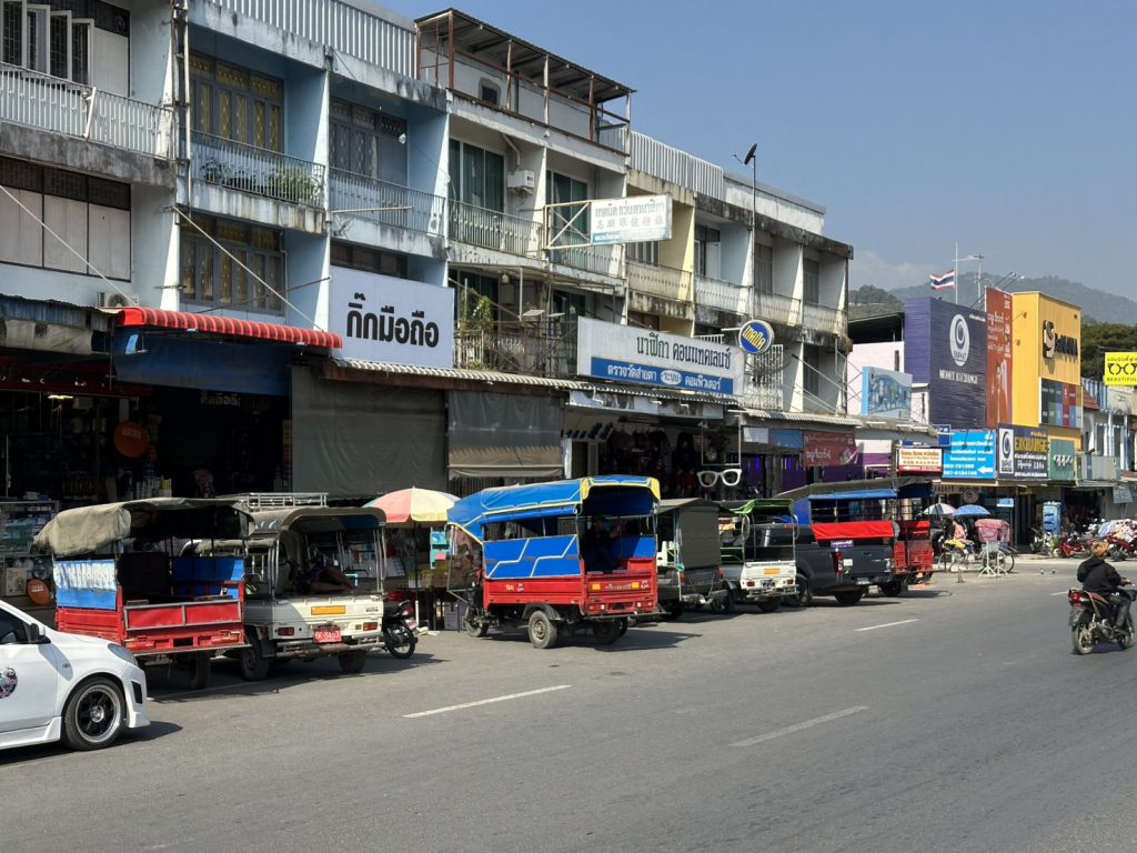 2.รถยนต์ 4 ล้อเล็ก มีทั้งป้ายดำ ป้ายแดง และแยกออกเป็น ถ้าใส่ม้านั่งเป็นรถรับจ้างโดยสาร ถ้าไม่มีม้านั่งคือรถรับจ้างแบบเฉพาะเป็นครั้งไป ซึ่งจะรับผู้โดยสารจากฝั่งเมียนมาเข้ามาจอดชื้อของบริเวณหน้าตลาดบน ถึงเวลาก็รับผู้โดยกลับ จอดไม่นานรถประเภทนี้ไม่ค่อยมีปัญหา
