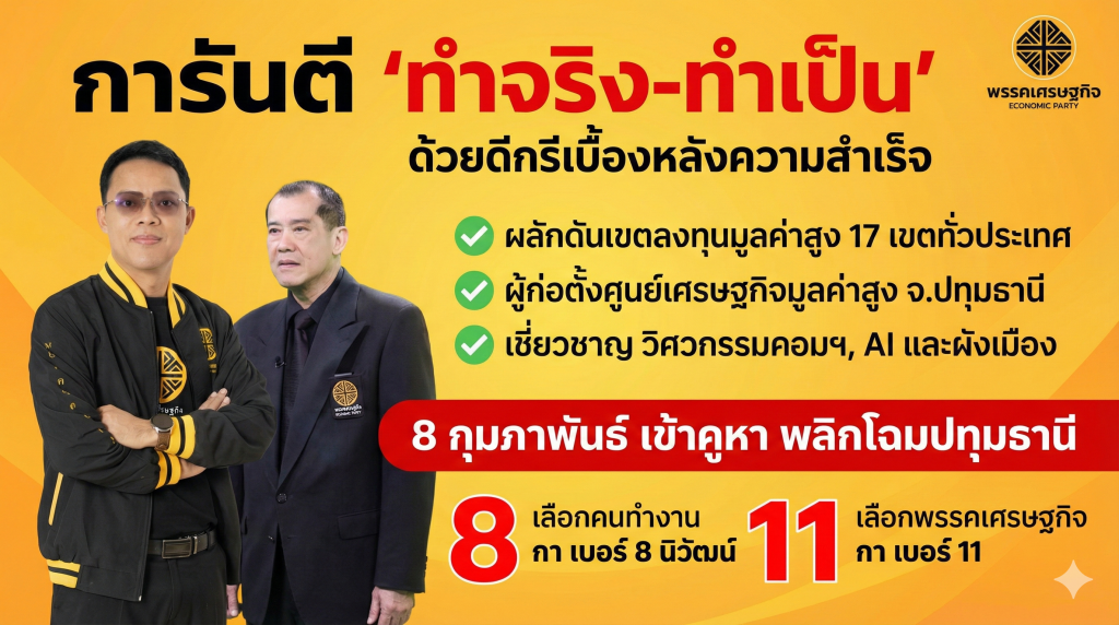 สนามเลือกตั้งปทุมธานี เขต 2 ระอุ! “นิวัฒน์ บุปผามาโล” ผู้สมัครหนุ่มไฟแรงจากพรรคเศรษฐกิจ สวมบท “วิศวกรนักพัฒนา” ลุยขอคะแนนเสียงถึงก้นครัวตลาดสด ชูจุดขาย “ไม่ใช่แค่นักการเมือง แต่คือคนทำงานจริง” งัดโปรไฟล์หรูด้าน AI และผังเมือง การันตีเปลี่ยนปทุมฯ สู่ฮับอุตสาหกรรมโลก พร้อมปั้นงานเกรดพรีเมียม 10,000 ตำแหน่งภายใน 4 ปี!