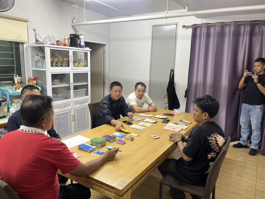 จากการตรวจค้นภายในห้องพัก พบของกลางจำนวนมาก ประกอบด้วย สมุดบัญชีเงินฝากรวมทั้งสิ้น 72 เล่ม และบัตรอิเล็กทรอนิกส์ (ATM) 55 ใบ จากหลายธนาคาร รวมถึงสมุดบันทึกรายการบัญชี 3 เล่ม และกระเป๋าผ้าสกรีนคำว่า “เศรษฐี” อีก 2 ใบ