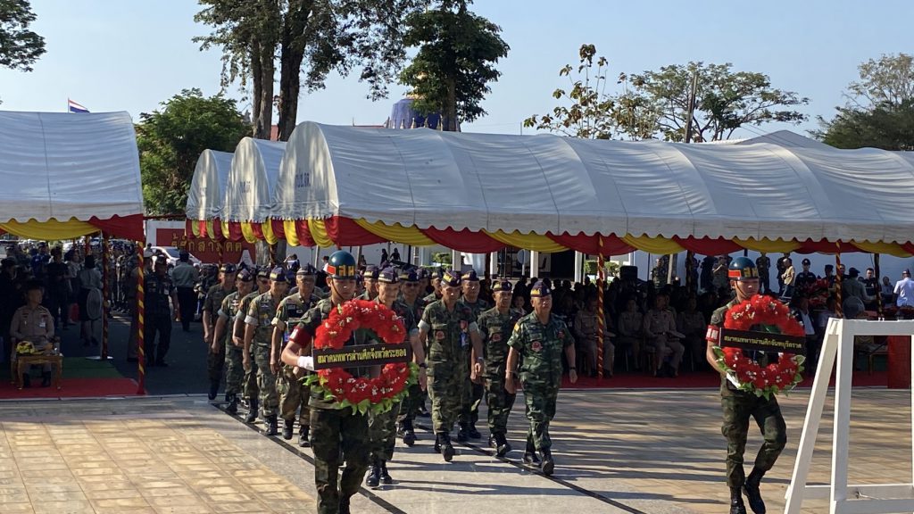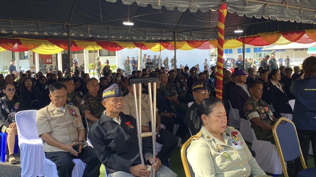 โดยมีทางพลเรือโทวีระชัย หลีค้า รองผู้บัญชาการหน่วยบัญชาการนาวิกโยธินและรองผู้บัญชาการป้องกันชายแดนจันทบุรีและตราด     ประธานในพิธีฯ   ได้อ่านคำปราศรัยของรัฐมนตรีว่าการกระทรวงกลาโหม    นายกสภาทหารผ่านศึก   เนื่องในวันทหารผ่านศึก 3 กุมภาพันธ์ุ 2569   พร้อมกันยืนใว้อาลัยเป็นเวลา 1 นาทีด้วยกัน   ในพิธีได้มีทหารกองเกียรติยศได้ทำการ ยิงสลุตจำนวน 1 ชุด 17นัด  ด้วยกัน