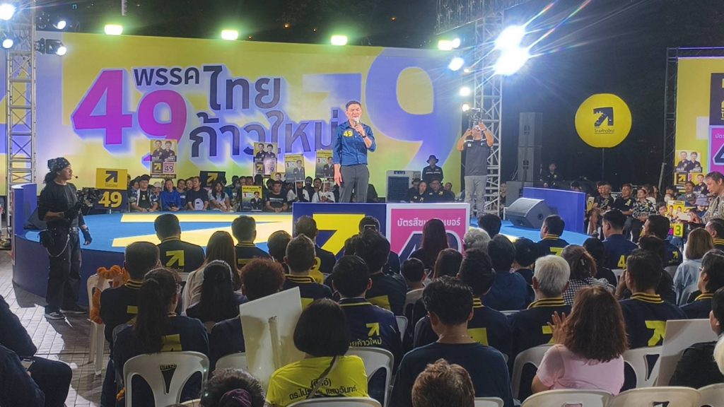 [6 กุมภาพันธ์ – กรุงเทพฯ] – บรรยากาศการเมืองช่วงโค้งสุดท้ายก่อนวันเลือกตั้งคึกคักถึงขีดสุด เมื่อพรรคไทยก้าวใหม่ (เบอร์ 49) เปิดเวทีปราศรัยใหญ่ ณ ลานแอโรบิก สวนจตุจักร ท่ามกลางประชาชนที่หลั่งไหลเข้าร่วมรับฟังนโยบายอย่างเนืองแน่น โดยแกนนำพรรคประกาศปักธงชัย หวังเป็นแกนนำในการปฏิรูปการศึกษาและแก้ปัญหาหนี้สินคนรุ่นใหม่