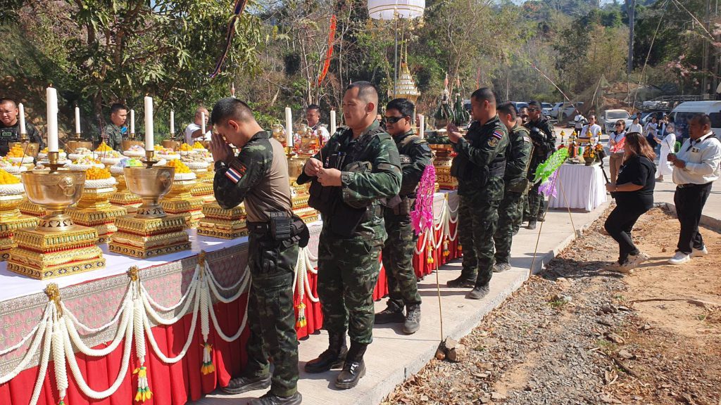 นอกจากนี้ น.ส.ธัญวัลย์ กานต์ขจรเดช และคณะผู้จัด ได้ขอเทพ เทวดา สิ่งศักดิ์สิทธิ์และดวงวิญญาณ ของบรรพบุรุษ ได้โปรดอวยพรให้เหล่าทหารหาญ พระภิกษุสงฆ์ และชาวบ้านบริวณสถานที่แห่งนี้ ประสบแต่ความสุขความเจริญ แคล้วคลาดปลอดภัยจากภัยอันตรายทั้งปวง ร่วมกันดูแลรักษาให้คงไว้ ซึ่งชาติ ศาสนา และพระมหากษัตริย์ ร่วมกันพัฒนาพื้นแผ่นดินไทย ให้เป็นแผ่นดินธรรม และแผ่นดินทองต่อไป