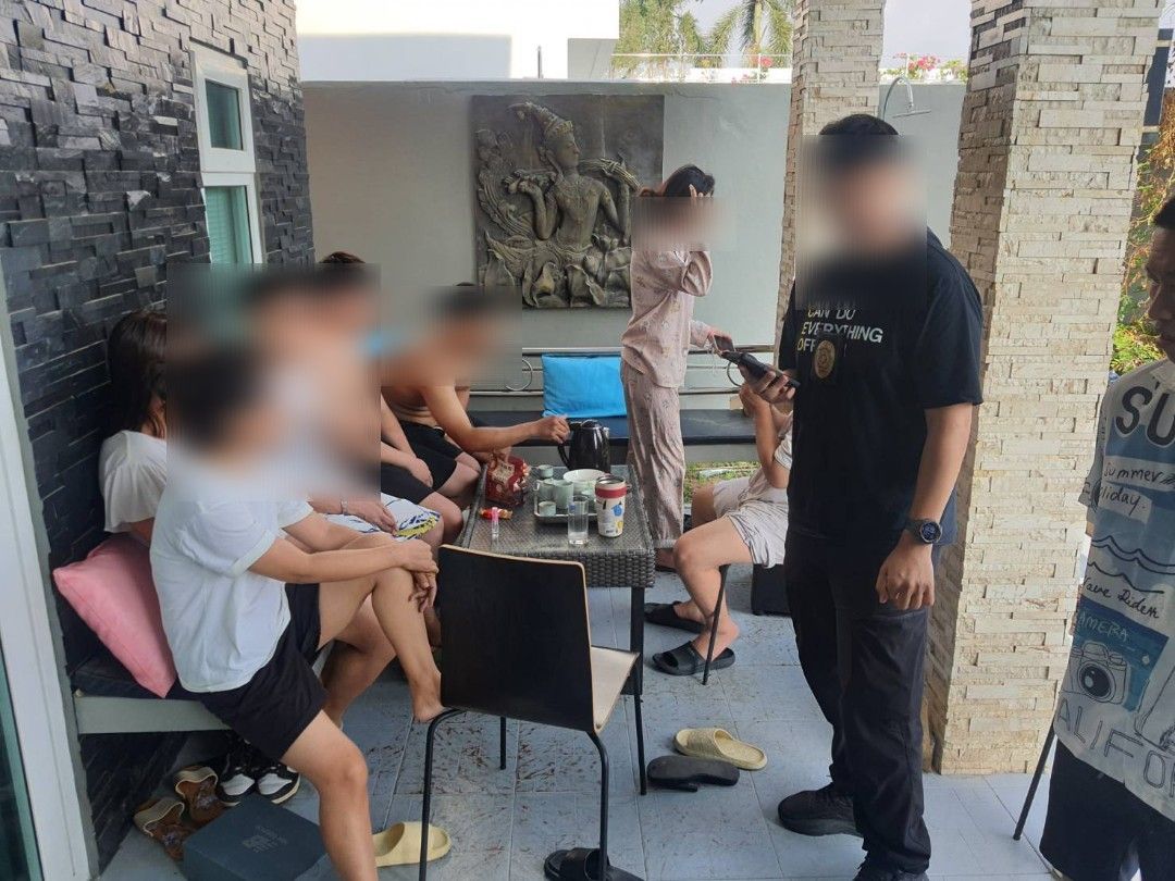 เจ้าหน้าที่จึงวางแผนเช่าพูลวิลล่าข้างเคียงซุ่มสังเกตการณ์ต่อเนื่อง 3 วัน กระทั่งพบความเคลื่อนไหวผิดปกติ มีชาวจีนจำนวนมากรวมตัวประชุมลับ ภายในบ้านถูกดัดแปลงเป็นห้องทำงาน มีคอมพิวเตอร์แสดงบัญชีรายได้และส่วนแบ่งผลประโยชน์ของเครือข่ายผิดกฎหมาย เมื่อตรวจสอบพบผู้พักอาศัย 10 คน เป็นหญิงไทย 3 คน และชาวจีน 7 คน โดยในจำนวนนี้ 6 คน เป็นบุคคลต้องห้ามตามฐานข้อมูลระหว่างประเทศ ถูกเพิกถอนสิทธิการพำนักและเตรียมผลักดันออกนอกราชอาณาจักร