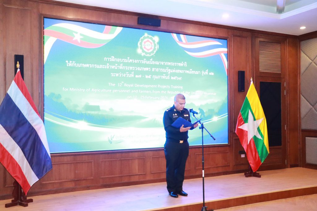 เมื่อวันที่ 17 กุมภาพันธ์ 2569 สำนักงานพัฒนาโครงการอันเนื่องมาจากพระราชดำริ หน่วยบัญชาการทหารพัฒนา (สนร.นทพ.) เดินหน้าสานต่อความร่วมมือระหว่างประเทศ จัดพิธีเปิดการฝึกอบรมโครงการอันเนื่องมาจากพระราชดำริ รุ่นที่ 12 ให้แก่เกษตรกรและเจ้าหน้าที่กระทรวงเกษตรจากสาธารณรัฐแห่งสหภาพเมียนมา เพื่อส่งเสริมการเรียนรู้หลักปรัชญาของเศรษฐกิจพอเพียง มุ่งเน้นการพึ่งพาตนเองและการพัฒนาที่ยั่งยืน