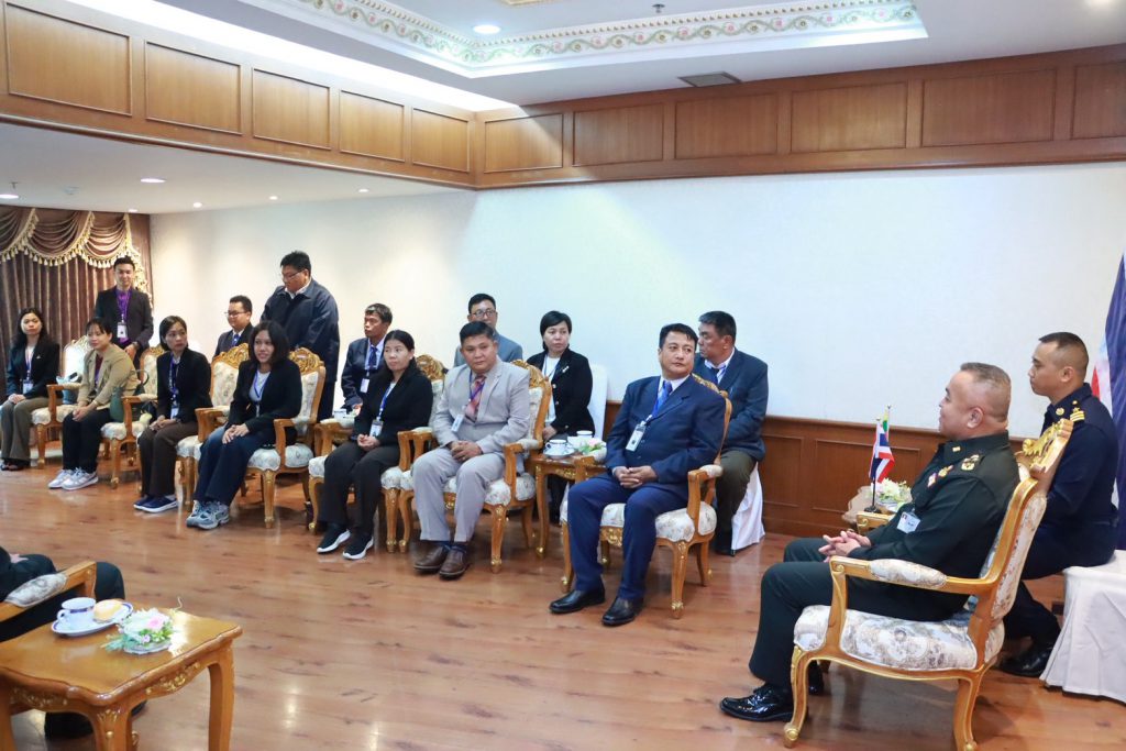 ผู้อำนวยการสำนักงานพัฒนาโครงการอันเนื่องมาจากพระราชดำริ หน่วยบัญชาการทหารพัฒนา ได้นำคณะผู้เข้าอบรมเข้าเยี่ยมคำนับ พลเอก ศราวุธ จันทร์พุ่ม ผู้บัญชาการหน่วยบัญชาการทหารพัฒนา (ผบ.นทพ.) ณ ห้องรับรองภูหลวง อาคารกองบัญชาการหน่วยบัญชาการทหารพัฒนา โดย ผบ.นทพ. ได้กล่าวต้อนรับและแสดงความเชื่อมั่นว่า องค์ความรู้จากโครงการอันเนื่องมาจากพระราชดำรินี้ จะเป็นเครื่องมือสำคัญที่ช่วยให้เกษตรกรเมียนมาสามารถสร้างความเข้มแข็งจากภายใน และเป็นสะพานเชื่อมความสัมพันธ์อันแน่นแฟ้นระหว่างกองทัพไทยและประชาชนเมียนมาสืบไป
