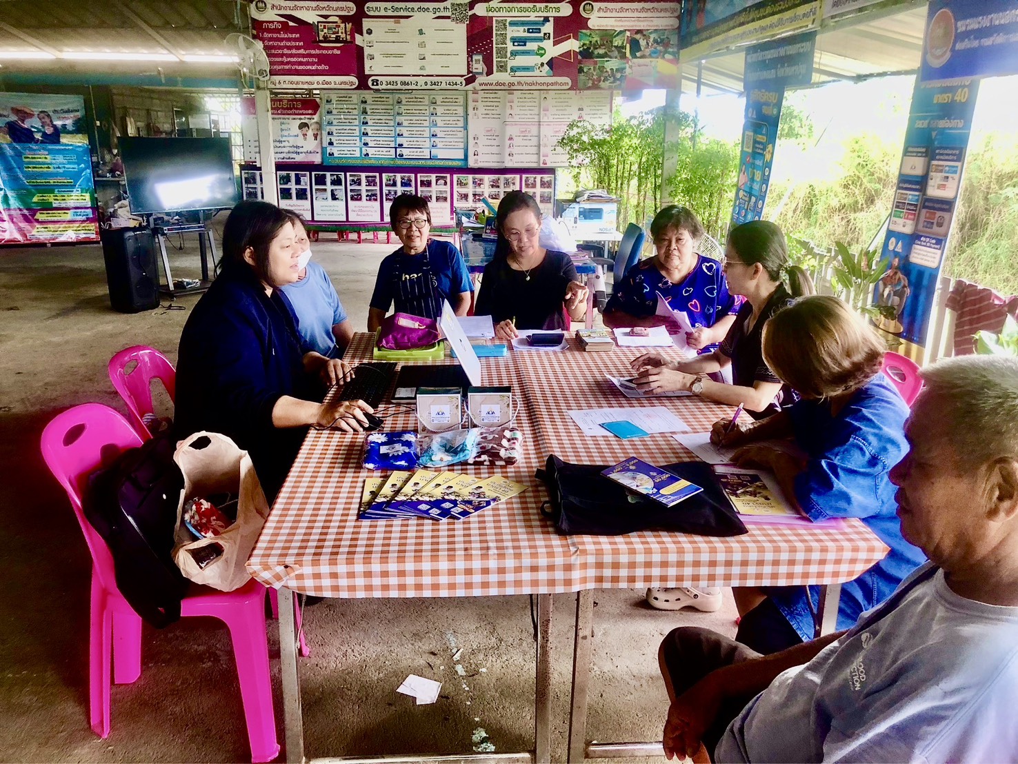 นางสาวสุกิจจา วานิชพงษ์พันธุ์ ประกันสังคมจังหวัดนครปฐม มอบหมายเจ้าหน้าที่ส่วนงานทะเบียนและประสานการแพทย์ ลงพื้นที่ให้บริการ พร้อมให้คำปรึกษา แนะนำสิทธิประโยชน์ด้านประกันสังคม เพื่อให้แรงงานทุกกลุ่ม ทุกวัย เข้าถึงหลักประกันทางสังคมอย่างทั่วถึง