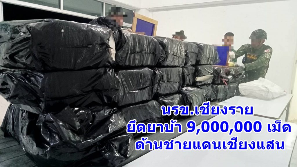เจ้าหน้าที่จึงได้เข้าไปทำการตรวจสอบ แต่ไม่พบคนขับแต่อย่างใด จึงได้ตรวจสอบที่กระบะรถ พบบรรทุกกระสอบฟางที่อยู่ในถุงพลาสติกสีดำมาด้วยเต็มลำรถ เมื่อเปิดพิสูจน์ในกระสอบพบว่าบรรจุยาเสพติดให้โทษประเภท 1 (ยาบ้า) ใบละประมาณ 200,000 เม็ด นับรวมของกลางยาบ้าได้ทั้งหมดจำนวน 9,000,000 เม็ด เจ้าหน้าที่ชุดตรวจยึด จึงได้นำของกลางทั้งหมด นำส่ง นรข.เขตเชียงราย เพื่อประสานหน่วยงานที่เกี่ยวข้องทำการขยายผลติดตามกลุ่มเครือข่ายยาเสพติดเพื่อมาดำเนินตามกฎหมายต่อไป.