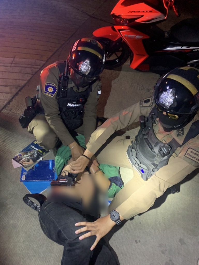 ภายใต้การอำนวยการของ พ.ต.อ.ประสพโชค เอี่ยมพินิจ ผกก.สน.ห้วหมาก สั่งการเจ้าหน้าที่ตำรวจ ใต้บังคับบัญชา ออกตรวจตราเฝ้าระวังตามมาตรการป้องกันเหตุ 600 (นักเรียนทะเลาะวิวาท) สามารถจับกุมสองนักศึกษา ปวส. ซ้อนท้ายรถจักรยานยนต์เข้าเรียนภาคค่ำ ตรวจค้นพบอาวุธปืน .38 พร้อมกระสุนซุกเป้ากางเกง สารภาพพกไว้ป้องกันตัวหลังรู้สึกมีคนตามปองร้าย