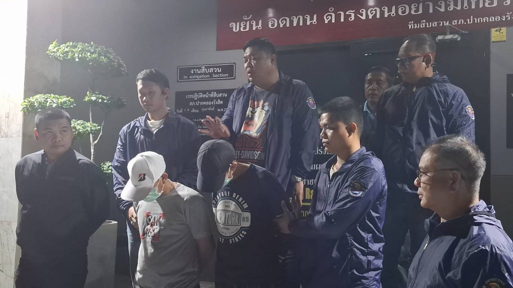 ผู้สื่อข่าวรายงานว่า เมื่อเวลา 20.30 น. วันที่ 19 ก.พ. 69 เจ้าหน้าที่ตำรวจ สภ.ปากคลองรังสิต ได้นำตัว 2 ผู้ต้องหาก่อคดีลักทรัพย์สายสื่อสาร พร้อมของกลาง มาทำการสอบสวนขยายผลและแถลงต่อสื่อมวลชน โดยมี พ.ต.อ.พัฒนชัย ภมรพิบูลย์ ผกก.สภ.ปากคลองรังสิด พ.ต.ท.สิรภพ บัวหลวง รอง ผกก.สส.ฯ พ.ต.ต.อิทธิพล พุทธรักษา สว.สส.ฯ และชุดสืบสวน ร่วมกันแถลงข่าว