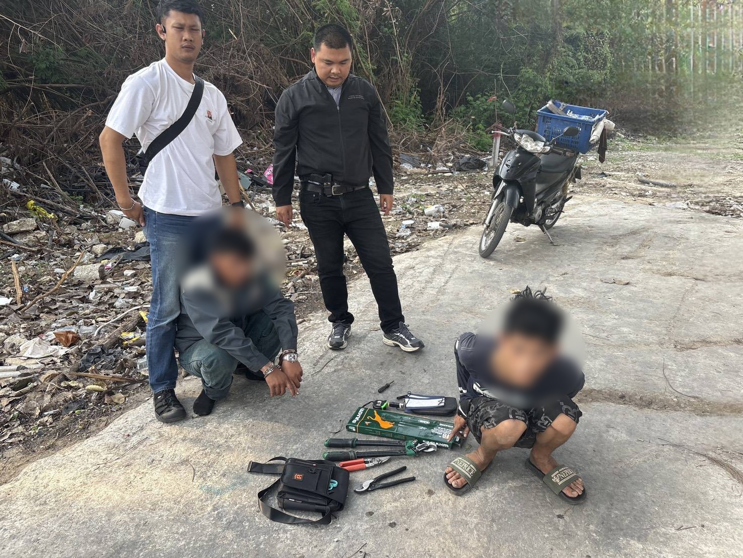 ต่อมาเมื่อช่วงเย็นวันนี้ (19 ก.พ. 69) เจ้าหน้าที่ชุดสืบสวน สามารถติดตามจับกุม นายกฤษณ์ภัสร์ อายุ 31ปี ต.ระแหง อ.ลาดหลุมแก้ว จ.ปทุมธานี และ นายตรีวิทย์ อายุ 24 ปี อยู่ ซ.จรัญสนิทวงศ์ 79 แขวงบางพลัด เขตบางพลัด กรุงเทพมหานคร พร้อมของกลาง โดยจับกุมได้บริเวณที่ว่างเปล่า ริมถนนสาธารณะ ด.บางรักใหญ่ อ.บางบัวทอง จ.นนทบุรี จึงนำตัวมาสอบสวนขยายผลและตามยึดของกลางเป็นสายสื่อสารที่มีการปลอกลอกออกจากสายพลาสติกสีดำ อุปกรณ์ในการตัดสาย มีดปลอกสายไฟ และรถ จยย.ฮอนด้า สีขาว คันที่ใช้ก่อเหตุ
